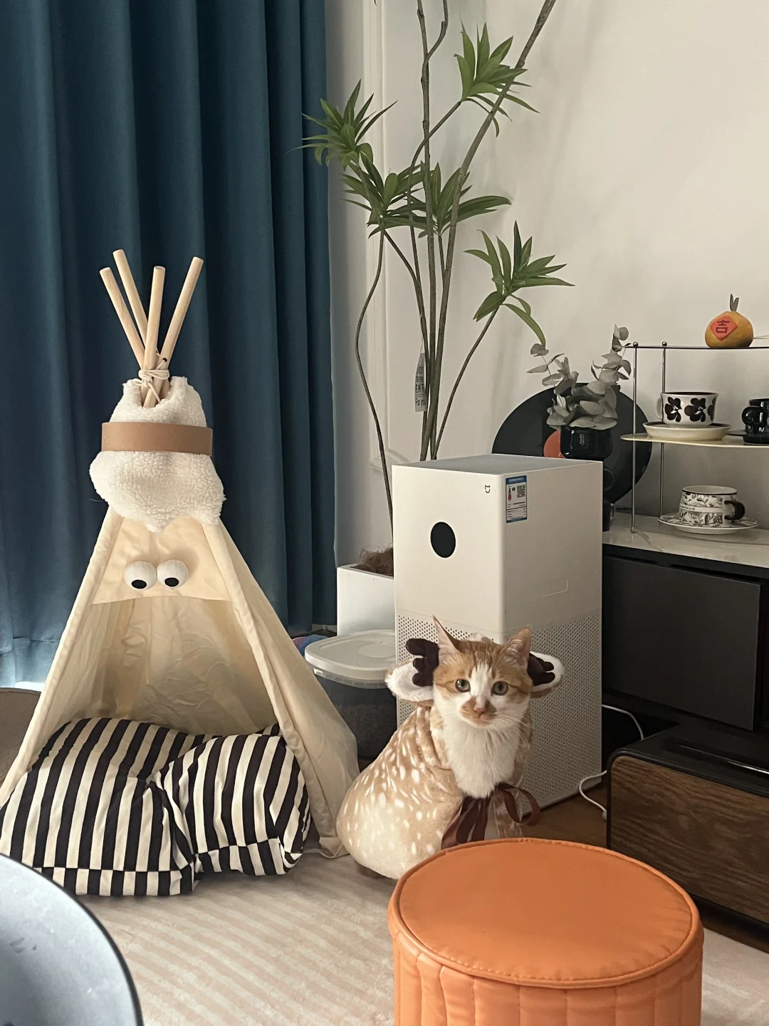 穿上小鹿衣服忽然就变得文静了也不知道是怎么回事。