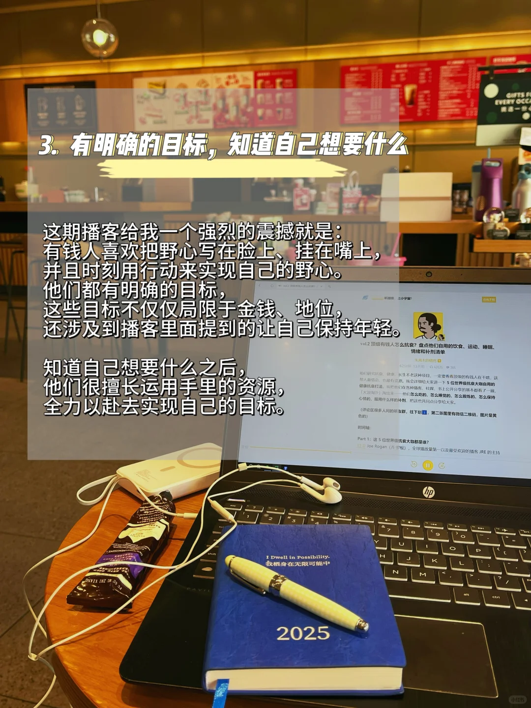 他们都有明确的目标,这些目标不仅仅局限于💰、地位,还涉及到播客里面提到的让自己保持年轻。