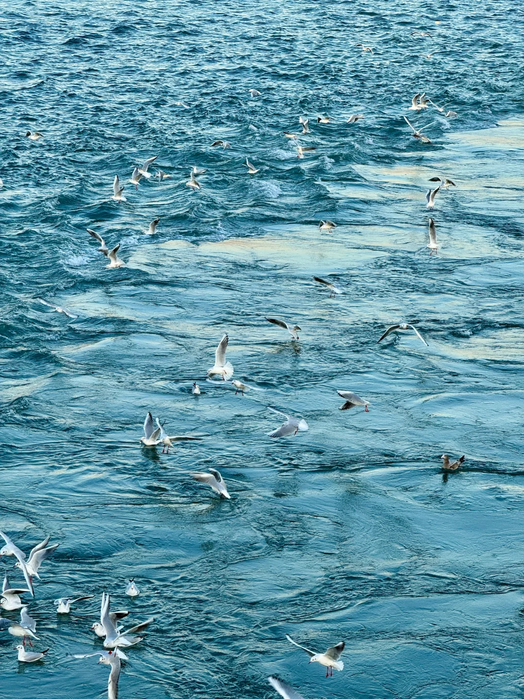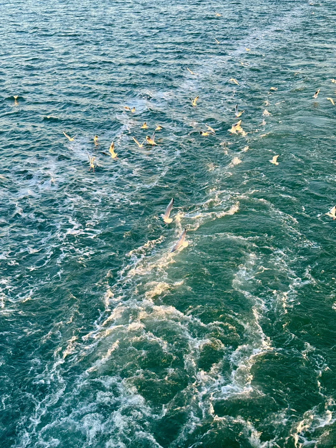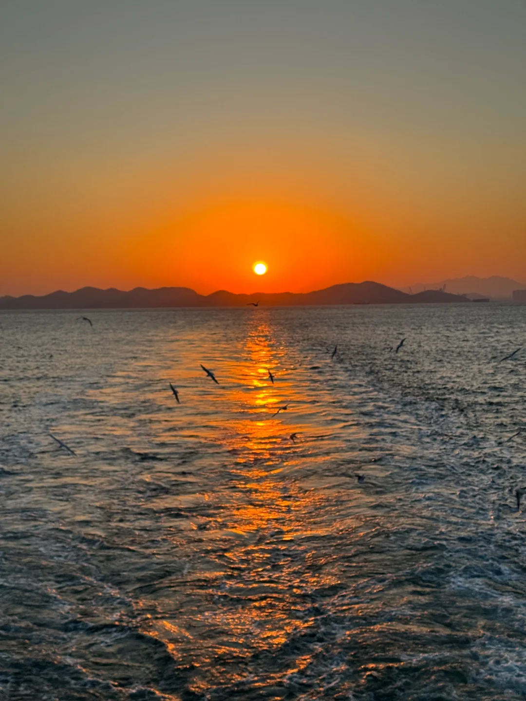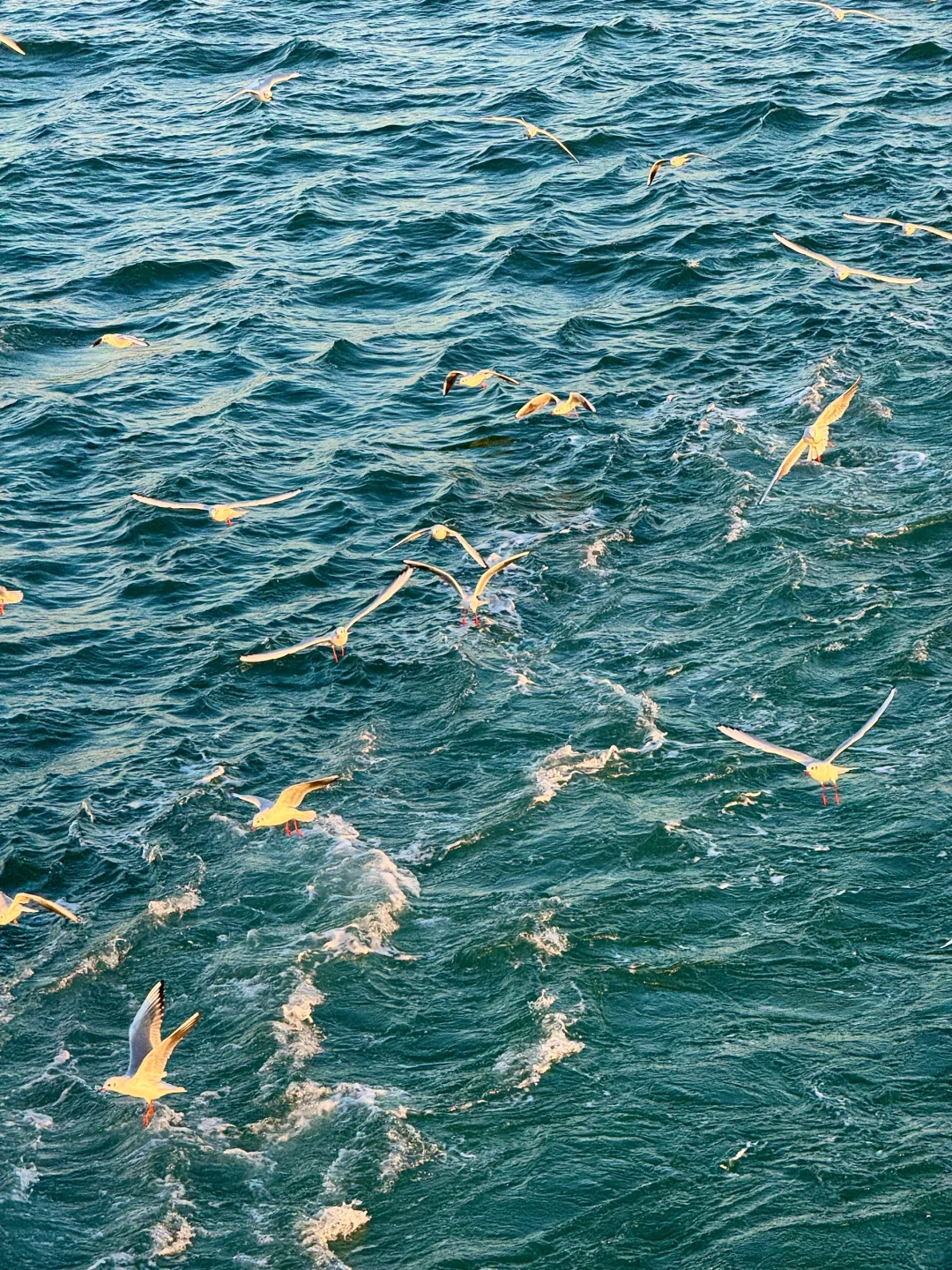 夕阳给海鸥镀了层金色的光✨青岛冬日之美