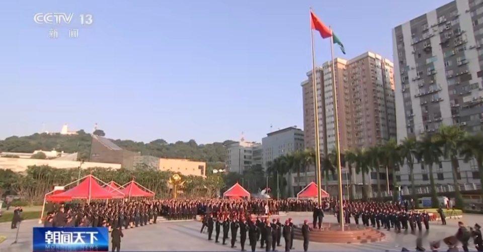 五星红旗与澳门区旗一同升起国泰民安