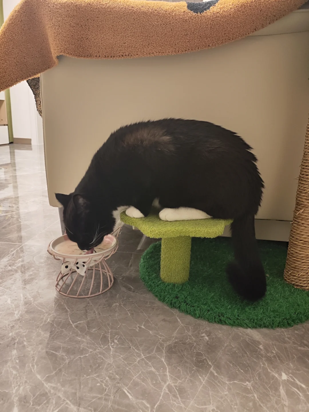 野外可没有野人给它垫高[doge]而且我不知道在哪个up里听说垫高碗吃饭小猫可能会有黑下巴,我就不动它了,一天低头进食的时间加起来都没有十五分钟的