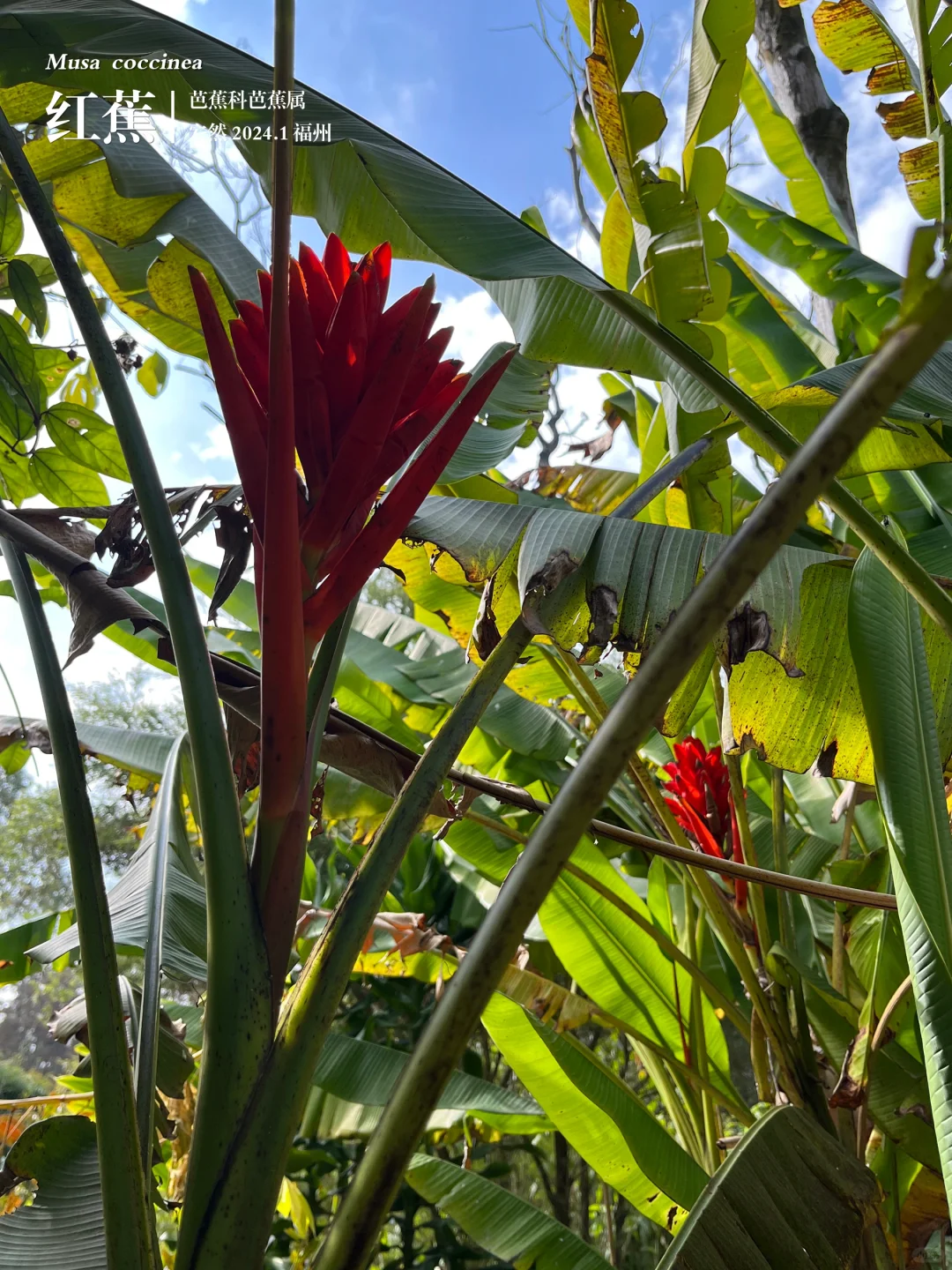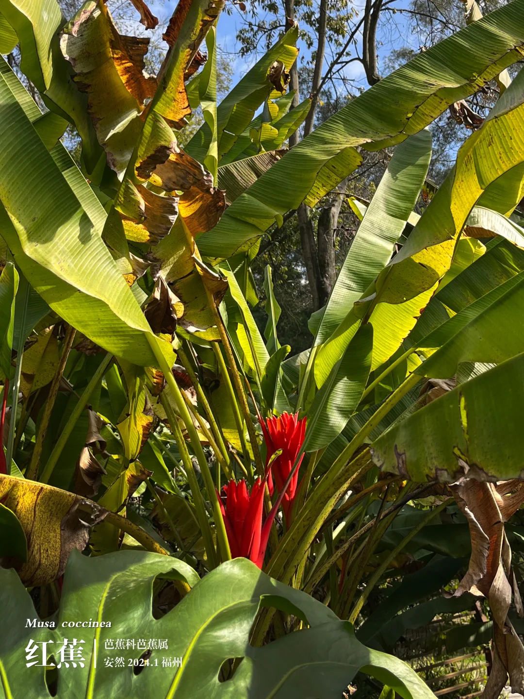 在福州冶山上有一处“红蕉坪”景观,之前听百花谷谷主介绍过,据说这个位置解放前曾经生长着多株红蕉,是民国时期文人雅士饮茶、作诗、作画、交友之所在,可惜上世纪50年代枯萎了。后续据说群友还在在福州北峰一带发现有野生红蕉林。看来红蕉是福州古而有之。