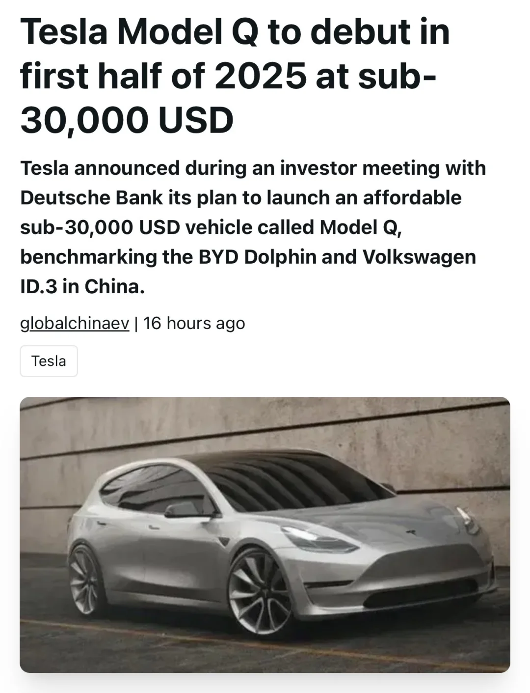 在北美获得补贴后,Model Q的售价预计将低于3万美元,这将使其成为特斯拉迄今为止最便宜的车型。