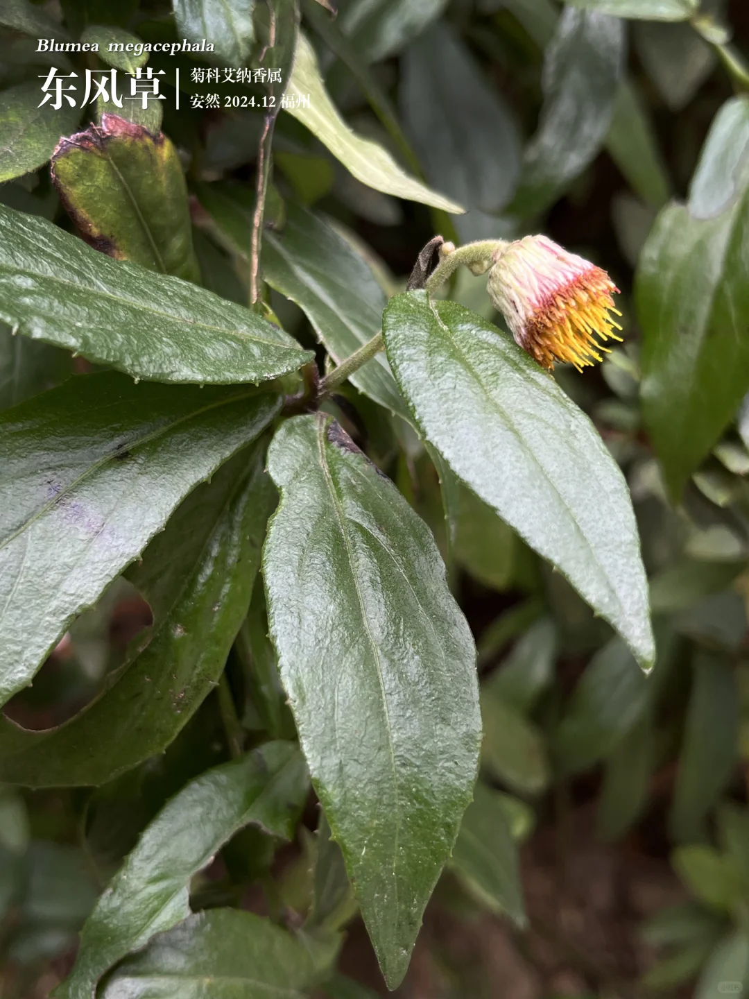 查过资料得知叫东风草,便觉得一定是个功效显著的药用植物,不然,怎么对得起”东风“这一名号,毕竟”万事俱备,只欠东风“。后续发现它清热明目;祛风止痒;解毒消肿,确实是一种非常有效的药用草本。