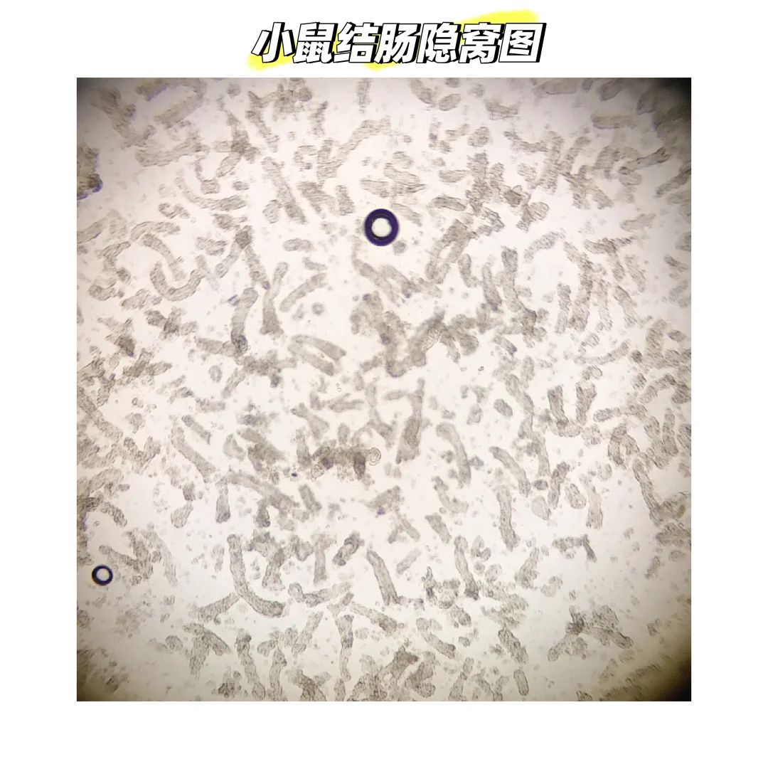 图二:小鼠结肠上皮组织表面有粘膜层无绒毛结构和潘氏细胞且隐窝呈长条状,大小在60-100um左右,一般选取100um细胞筛过滤获得较多体积量的隐窝。