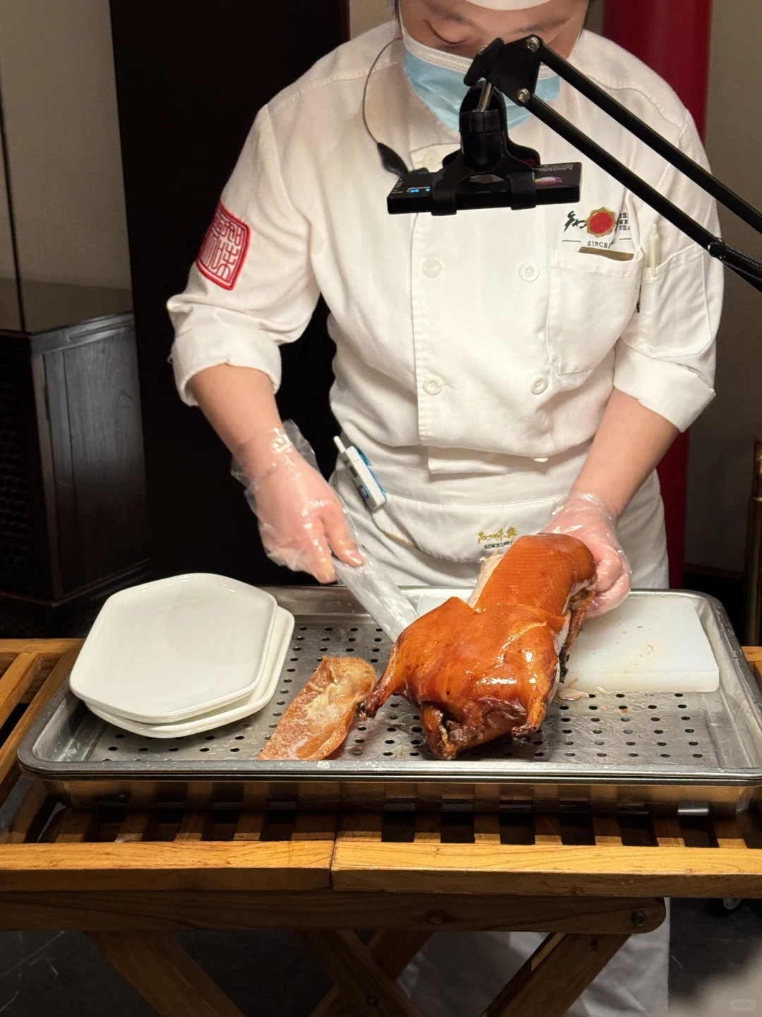 油亮亮的烤鸭皮蘸白糖我超喜欢的吃法