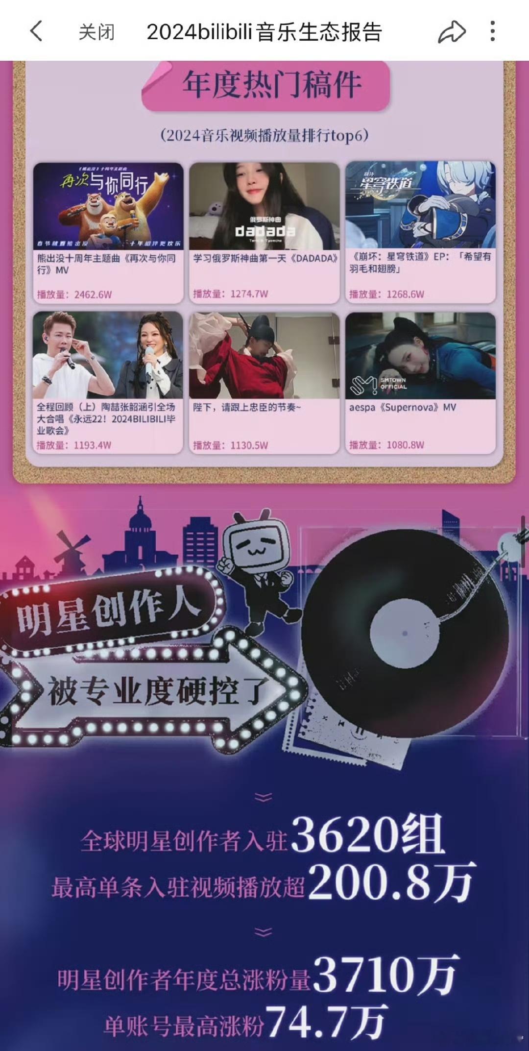 2024B站音乐报告 年度报告已出,小破站亮点满满。不仅可览 UP 主详情,年度神曲 apt 更是大放异彩,如同一颗音乐炸弹在 2024 炸响。