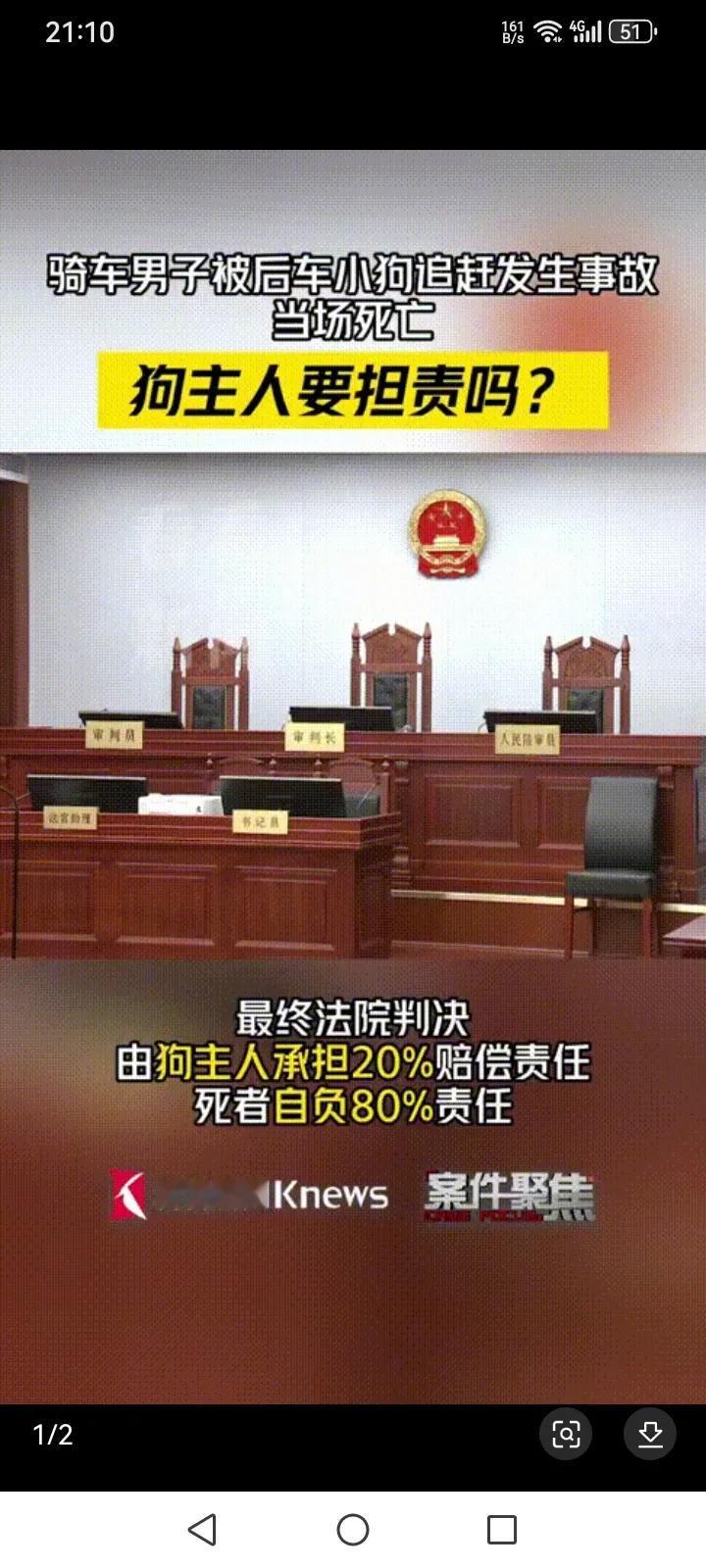 通过党某的案件,我又想起了另一起“可笑”的案件。 男子骑车被狗追,不料一不留神撞树上当场死亡,而法院最终判决狗主人承担20%的责任,死者自负80%的责任,原因是: 1、男子多次回头往后看,没有谨慎驾驶; 2、事发前男子超速了,37㎞/小时; 3、不能证明宠物狗能够对许某产生非常紧迫的危害性。 我认为判的不合理: 1、被狗追会下意识的回头看; 2、被狗追不赶紧跑等着被咬? 3、谁敢保证那狗不咬人?