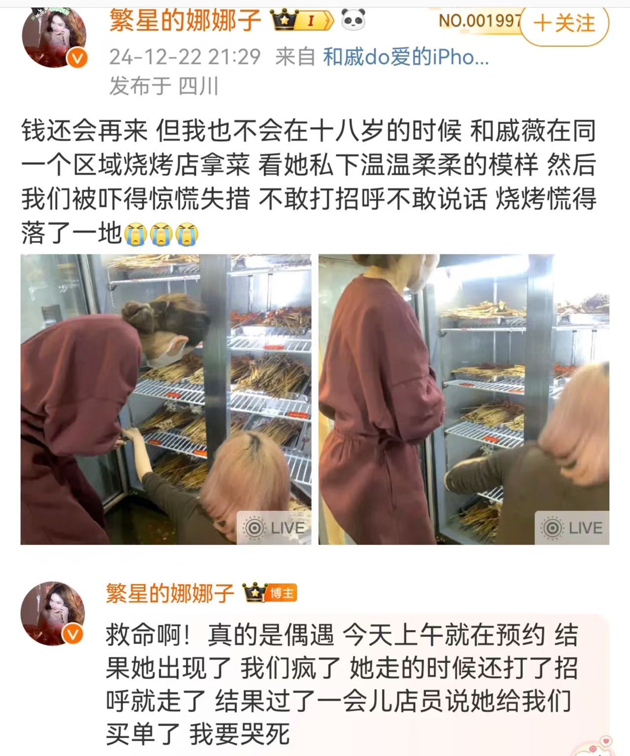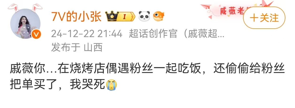 《钱还会再来 但我再也不会..》这个系列到戚薇这里是真的让我破防了啊啊啊!!你们就这样水灵灵和戚薇在烧烤店偶遇对吗 然后吃上了戚薇请的饭😭戚薇你很迷人你知不知道 这个场景完全就是电视剧里请吃饭的漂亮姐姐具象化。。祈求这个冬天送我一趟碰见戚薇这么偶像剧的浪漫遇见[泪]