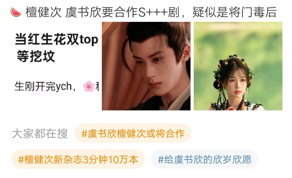 🍉檀健次、虞书欣将合作《将门毒后》~二位符合原著吗咱就是说?