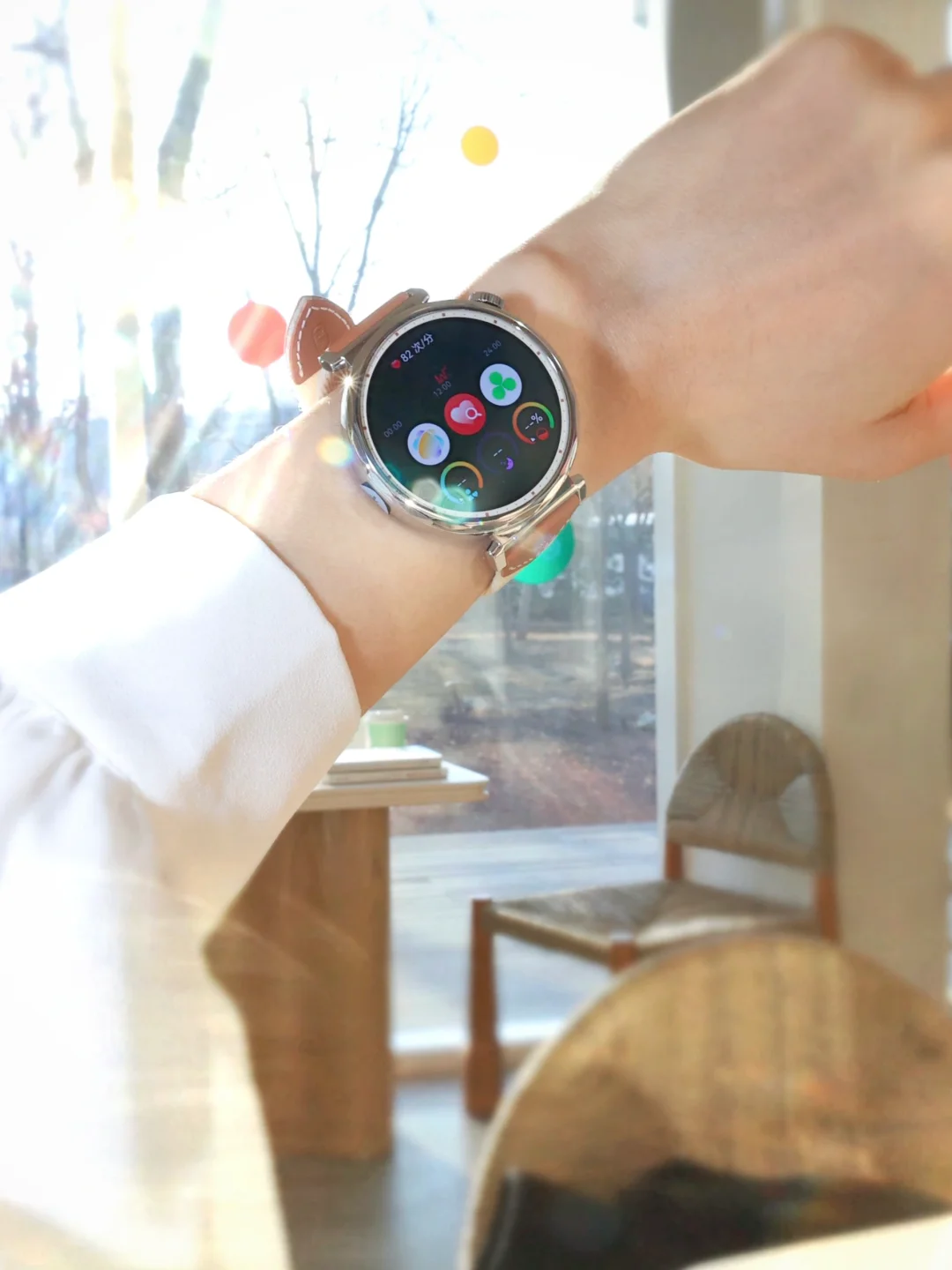 有着皮质与编织复合表带的HUAWEI WATCH GT 5