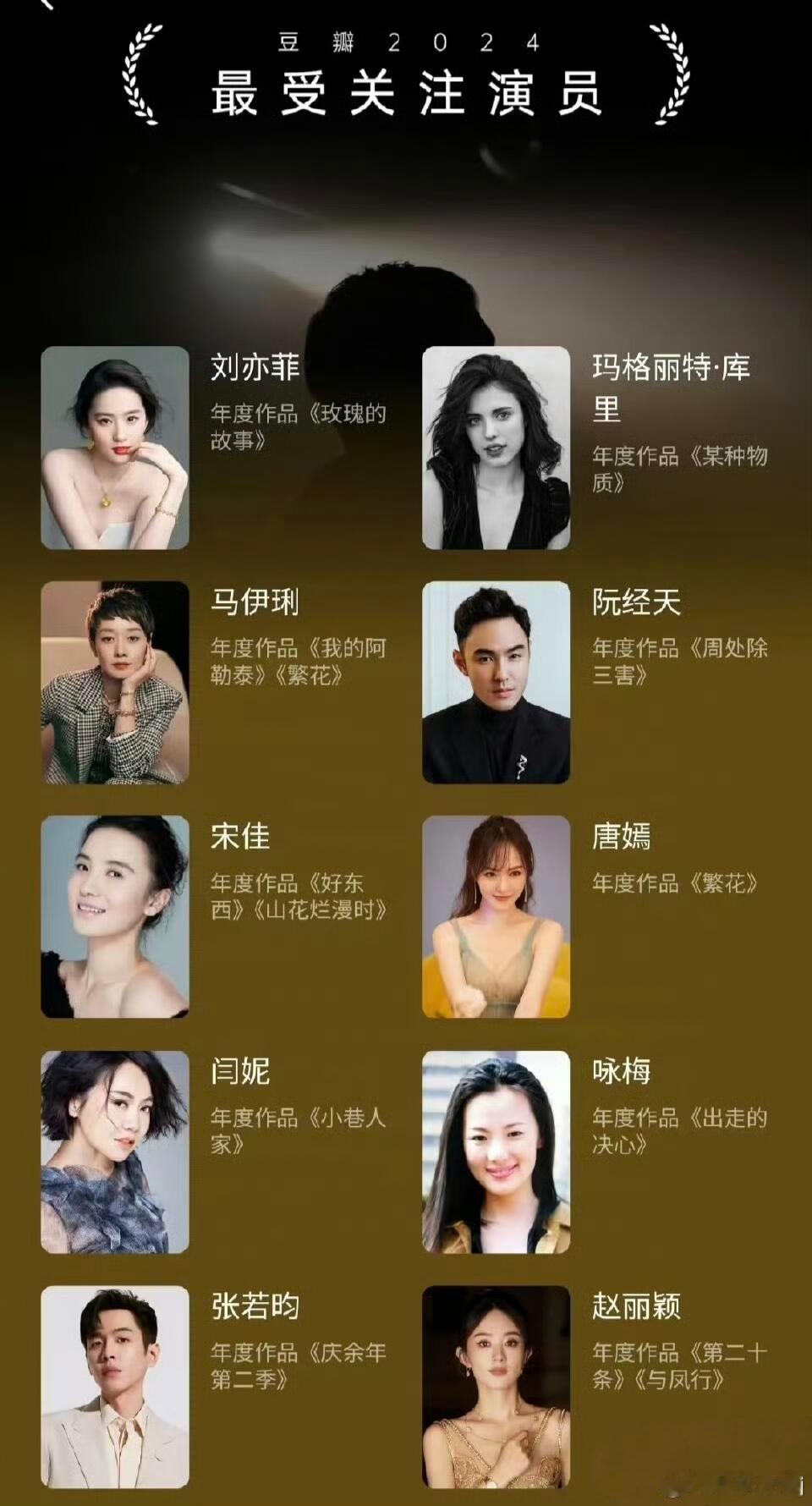 在刚刚揭晓的豆瓣2024最受关注演员榜单上,刘亦菲凭借精湛的演技和独特的个人魅力,成功斩获第一名,荣获大奖。这无疑是对她多年来在演艺圈努力与付出的最好肯定。