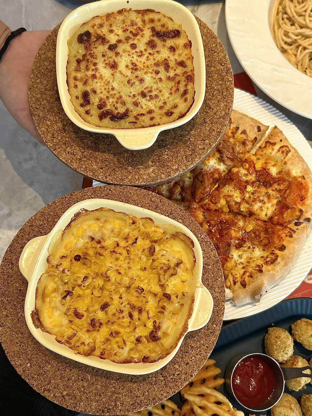 必胜客大菜单刷新我认知了❗️ ✨一下子就把价格打下来了!芝士黄金甜玉米粒、纽约客式脆薯格才9.9r❗️主食也不贵,比如那不勒斯式肉酱香肠饭才19.9r,中午吃个工作餐再合适不过了,比点外卖还便宜~还点了个经典的意式肉酱风味嫩鸡披萨,39r,两个人女生吃份量完全够~ 🌈必胜客终于不是我高攀不起的样子了,人均二三十吃得超好!