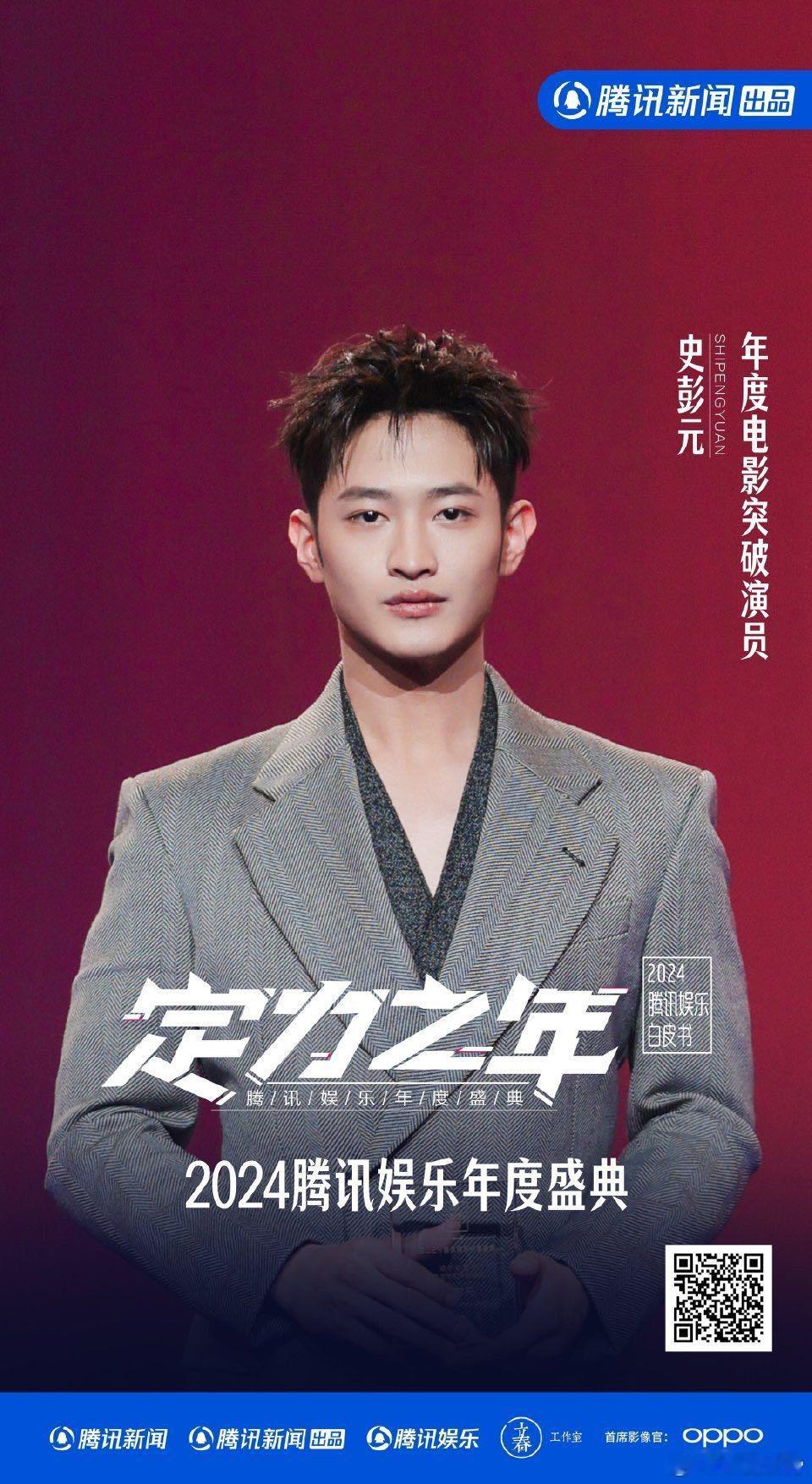 史彭元获得年度电影突破演员 史彭元谈和秦昊韩庚合作收获 瞧,史彭元在盛典上分享的合作经历多真挚。从秦昊、韩庚到张译,他不断学习积累,获年度突破奖只是开始,期待他更精彩的演绎!