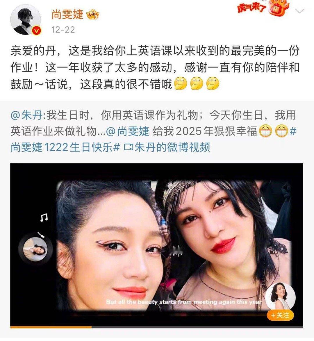 尚雯婕红毯回应朱丹全英文祝福 在尚雯婕的生日之际,朱丹用全英文送上了真挚的祝福,这份心意不仅让尚雯婕成就感满满,更让我们见证了她们之间那份纯粹而美好的情感。这样的互动,如同冬日里的一缕暖阳,温暖人心,让人不禁感叹:友谊地久天长,美好因你我而延续!