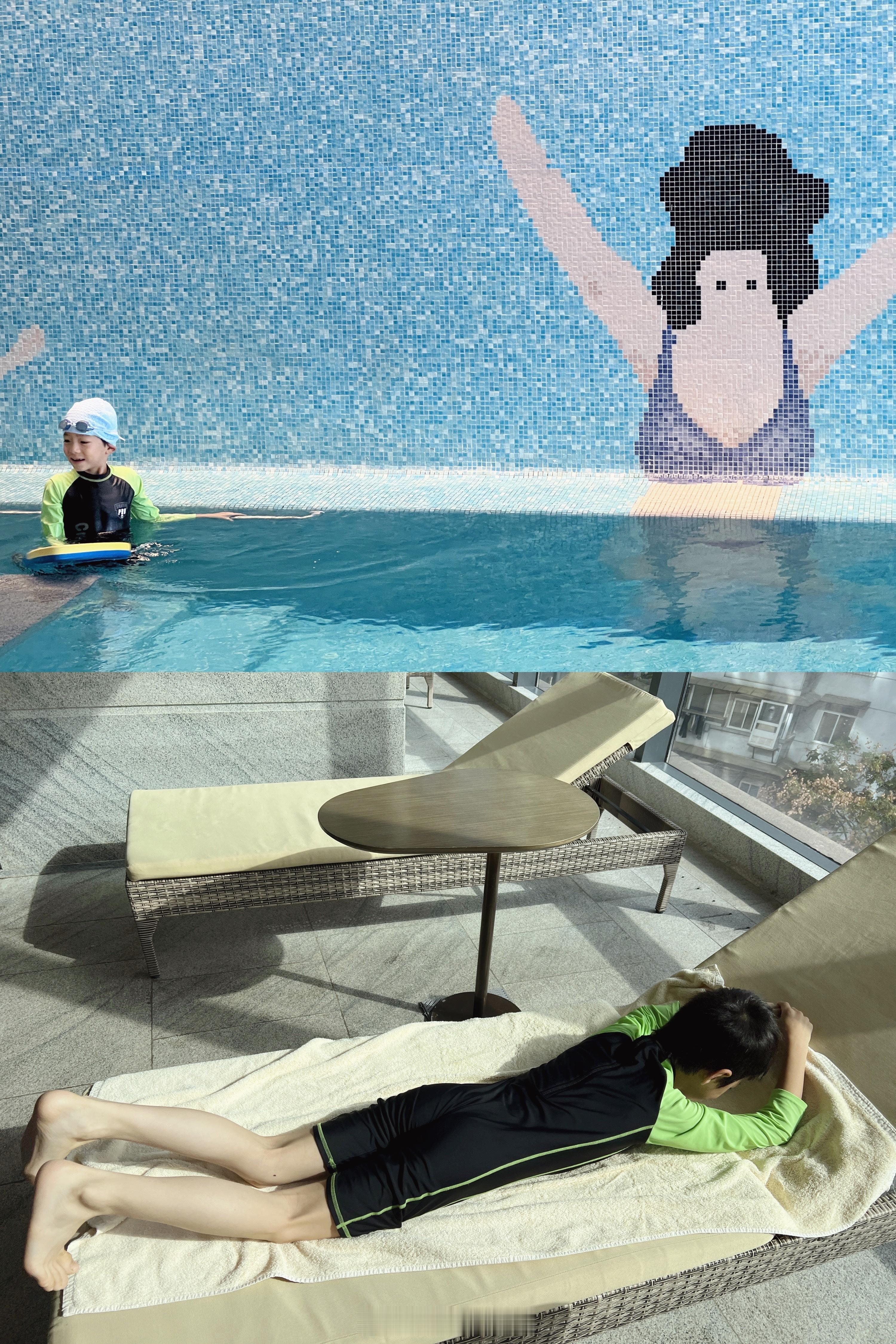 🏊:这次出门一直没游泳,赶在退房前带他去碧波畅游了一番,武汉香的泳池温度适宜,也有专门的亲子池,小朋友喜欢晒得到太阳的泳池,一直不舍得走,以超时一分钟一元钱的代价让送机司机多等了半小时。一杯咖啡的钱,让小朋友尽兴,接机司机开心,整个旅程也变得更舒心。