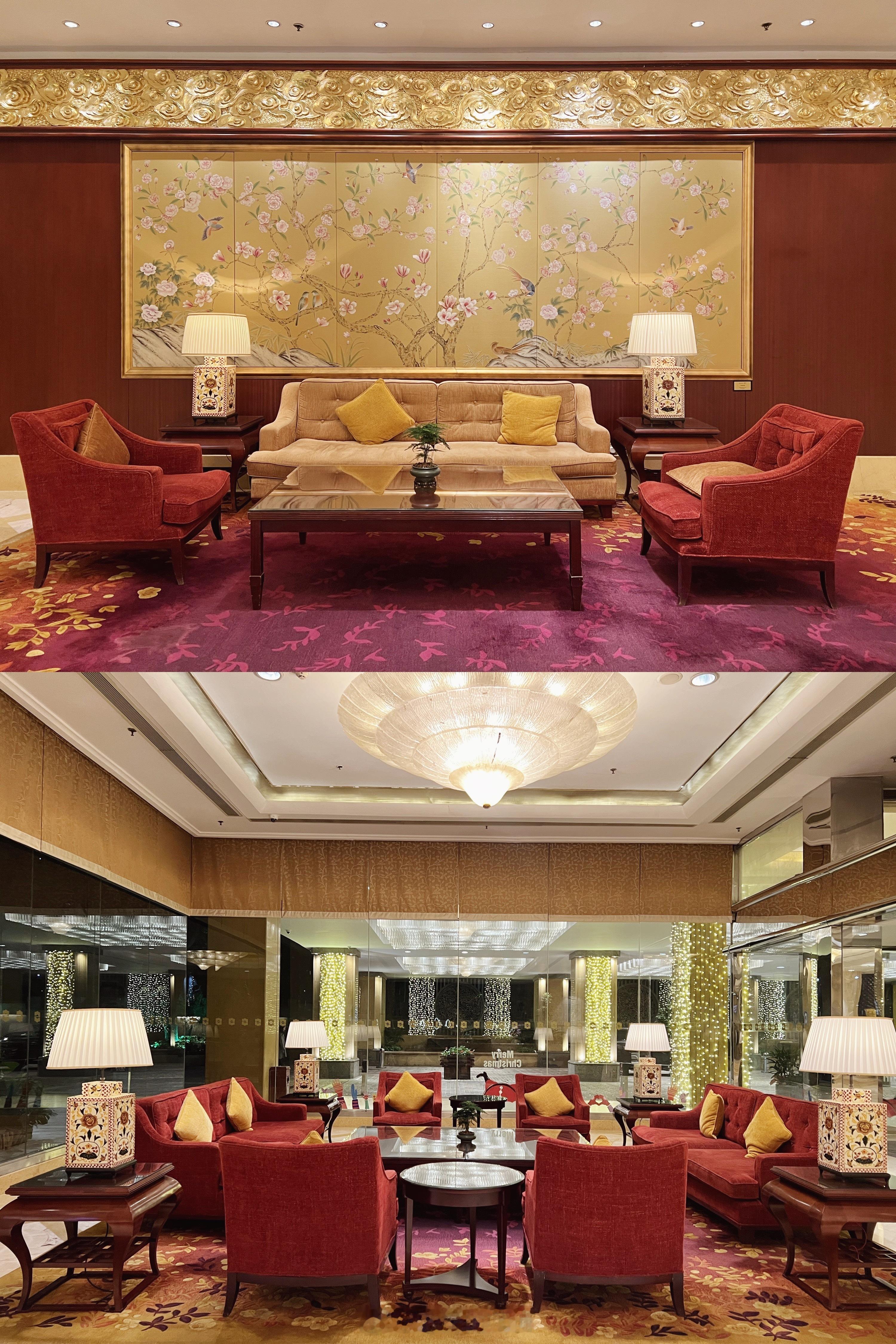 🏨:步入大堂,因楼体原因,也不是早年香鸡的那种一眼的挑高开阔,但水晶吊灯、富贵红、圣诞绿、江城五月,还是符合黄金时代低调奢华有内涵的气质。小朋友对气味很是敏感,香格里拉香氛是他喜欢的味道。