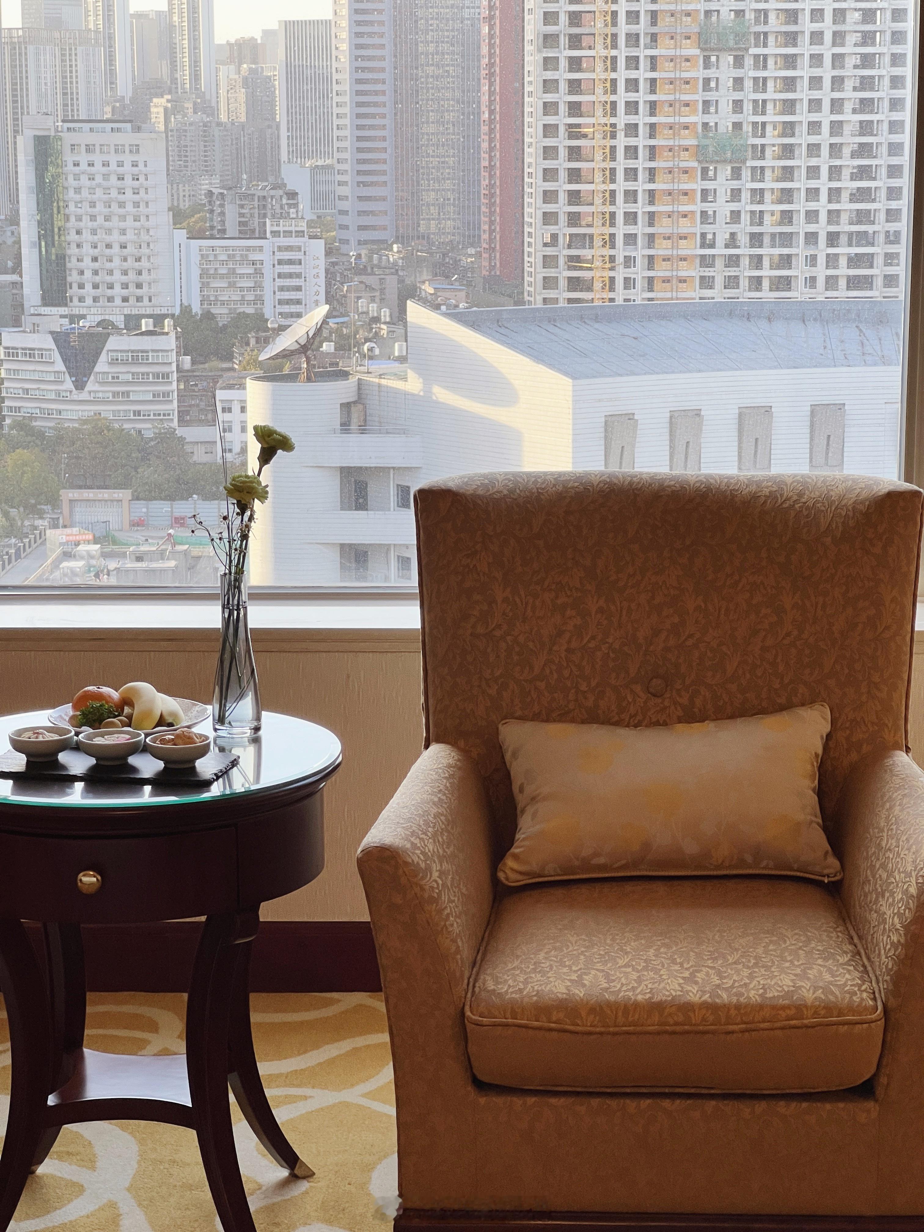 🛏️:21层408间(套)大体量客房,最小户型为36平,CI升级为豪华阁行政房,窗外正对造型独特的武汉市图书馆,房内装修也是典型的香格里拉客房,很多出差党钟情,就是喜欢这种完全分割的浴室和客房,没有透明雾化玻璃,没有推拉门,没有若隐若现。欢迎礼已备好,客房服务响应及时,要水搬来了一整箱。