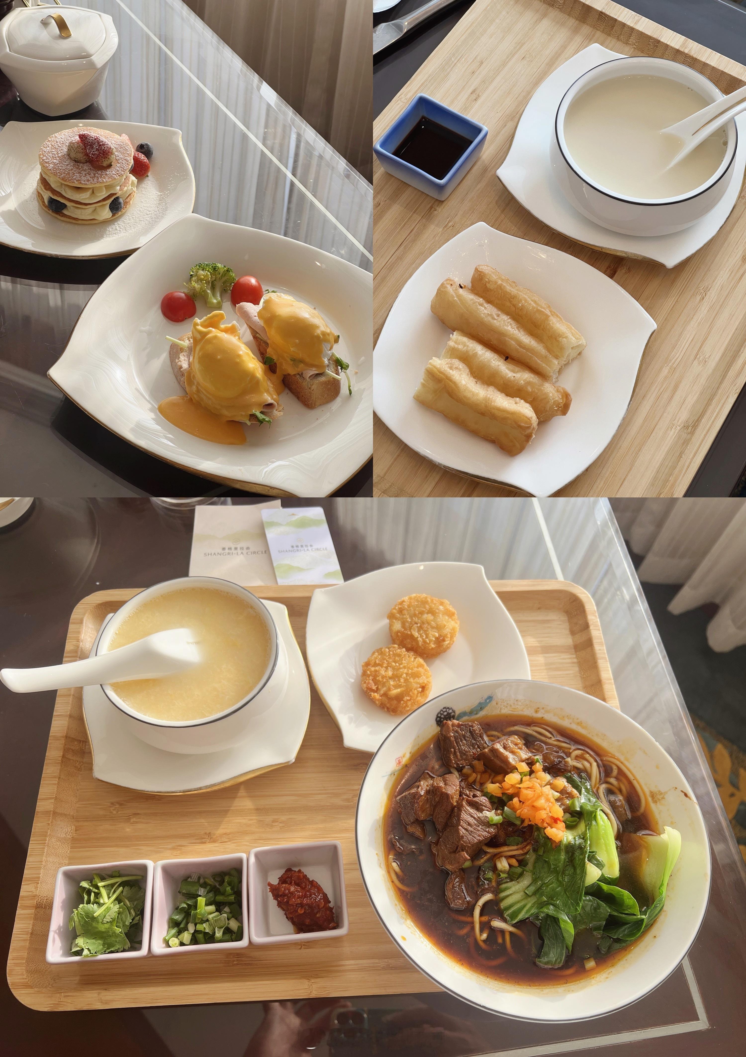 🍚:餐饮业态,中西餐齐备。早餐在香苑咖啡厅,有丰富的当地小吃可供选择,但我还是重点推荐豪华阁,住过不少香格里拉,行政酒廊这一方面,真的是很多奢牌都比不上,只是能单点这一项已经赢了,HH出品也完全可以当正餐来享用。
