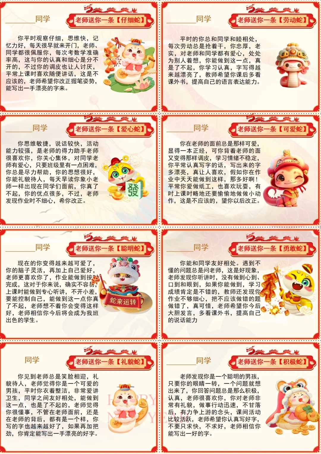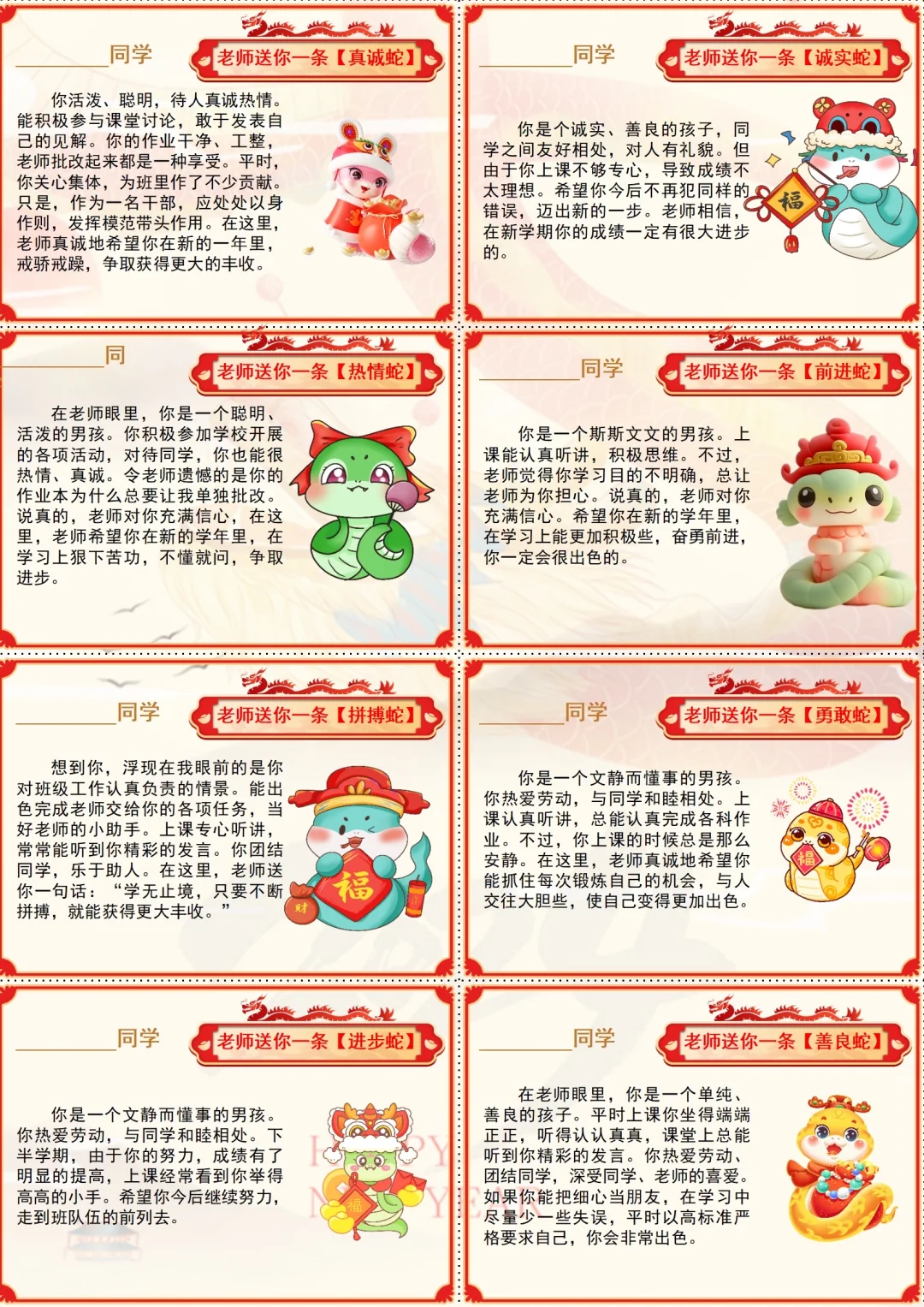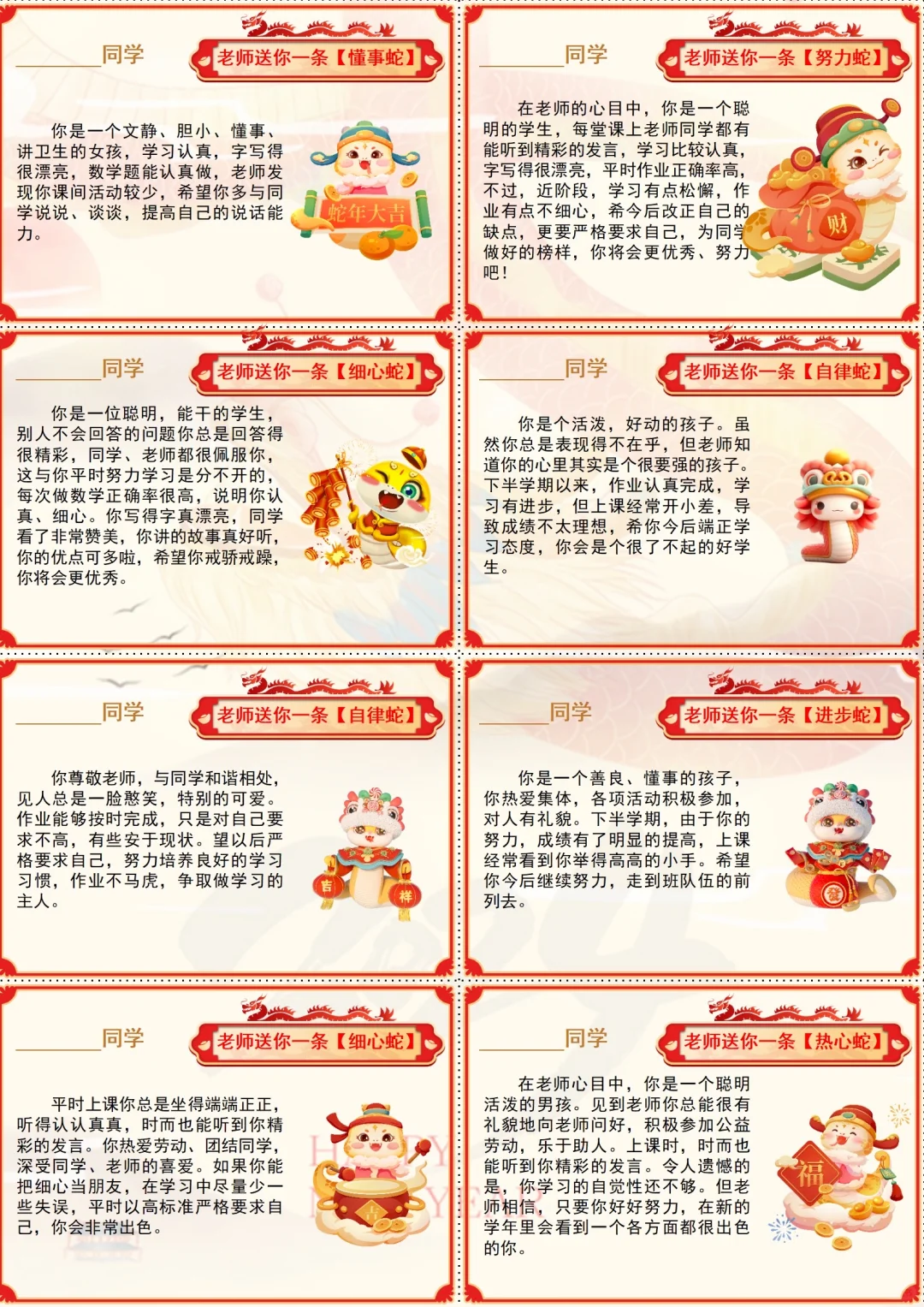 这样的幼儿园蛇年期末评语,每个孩子都开心