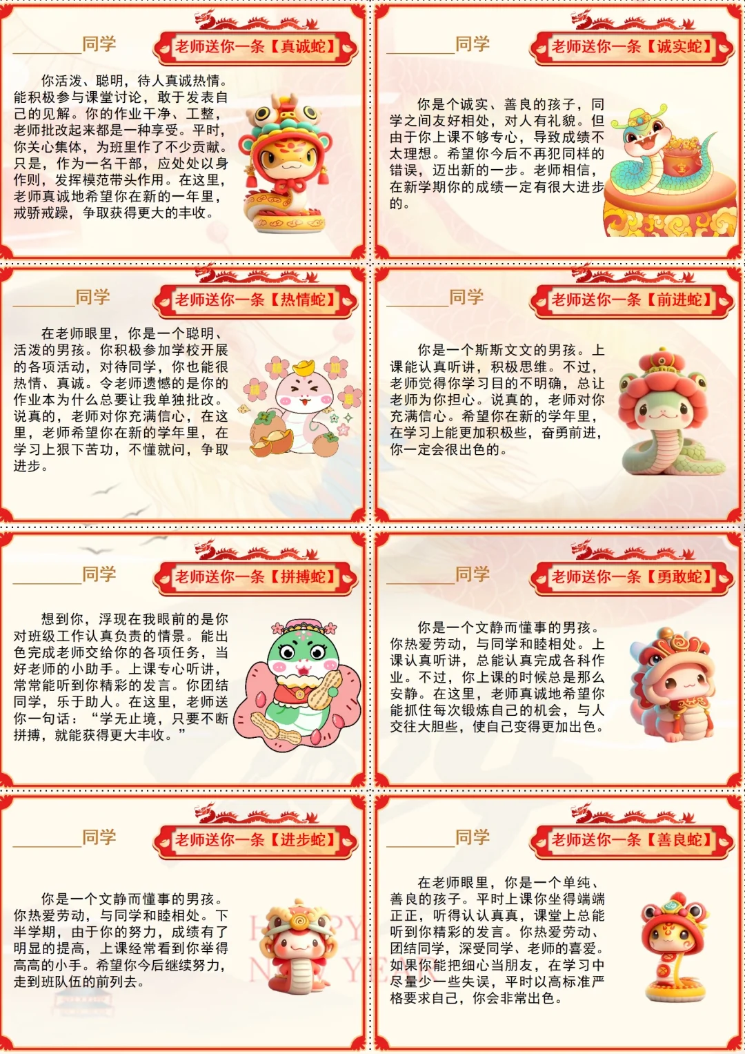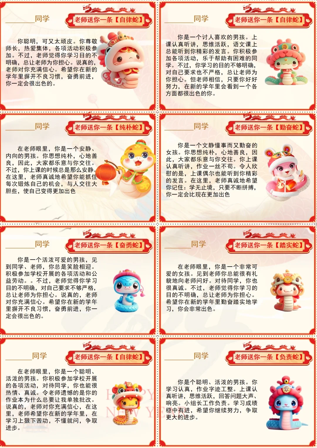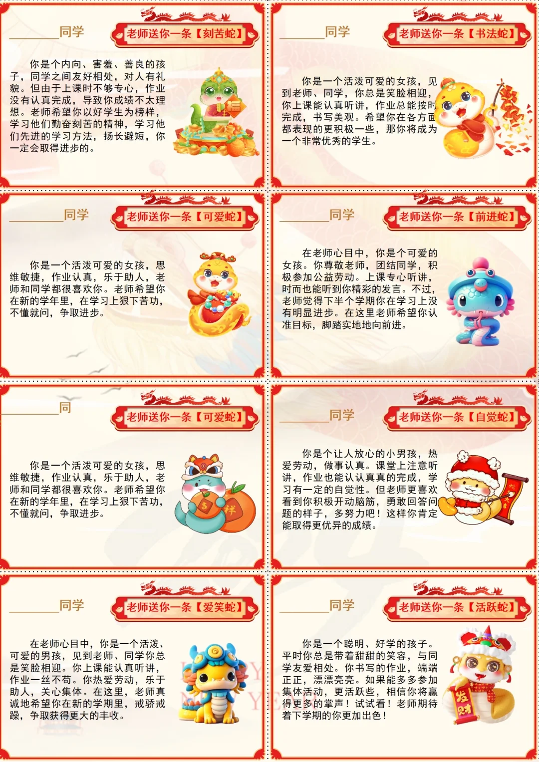 这样的幼儿园蛇年期末评语,每个孩子都开心