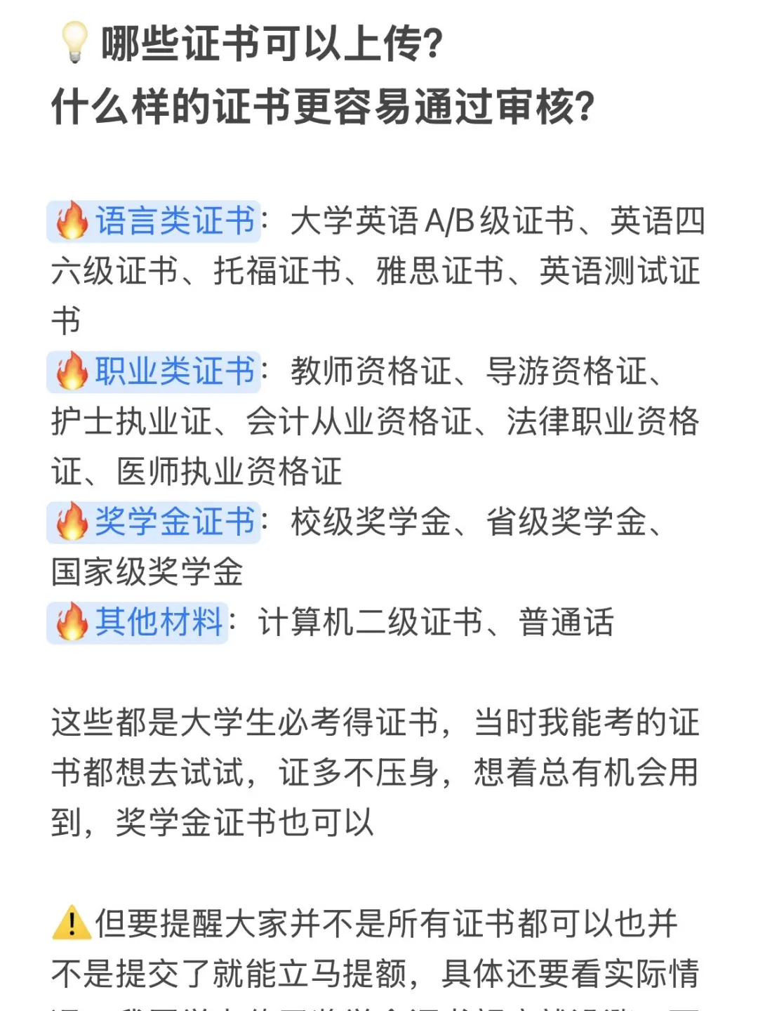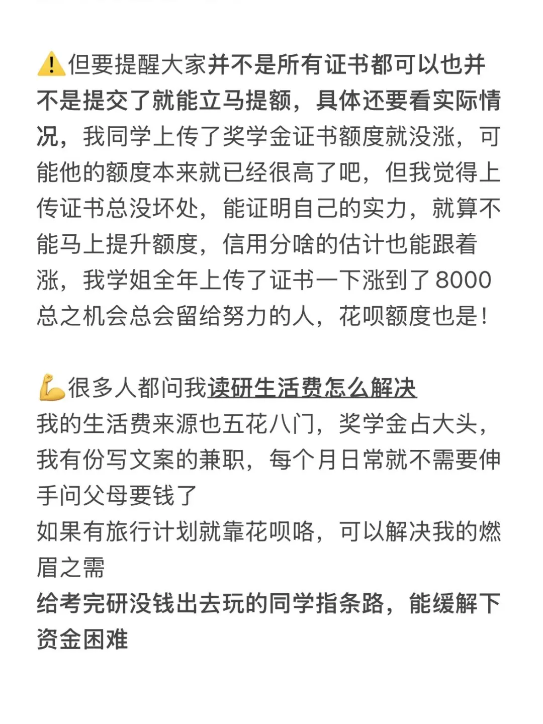 ⚠️但要提醒大家并不是所有证书都可以也并不是提交了就能立马提额,具体还要看实际情况,我同学上传了奖学金证书额度就没涨,可能他的额度本来就已经很高了吧。