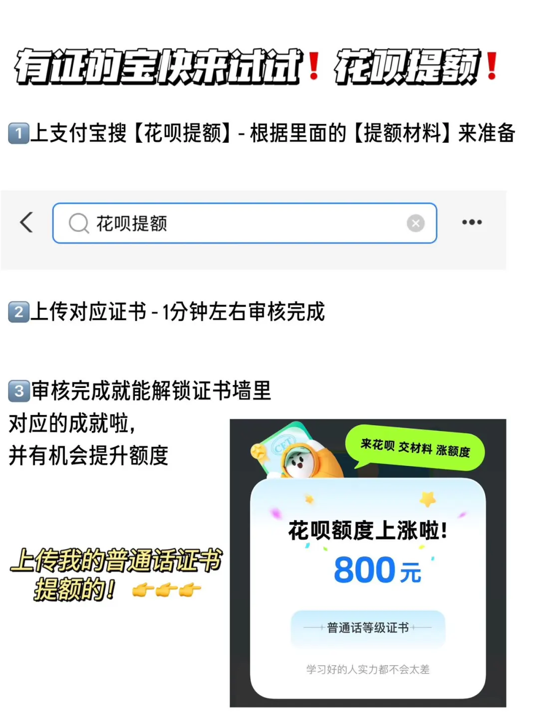 顺便又用这些证书把我多年不动的花呗额度也成功涨上去了!咱就是说真正的物尽其用了哈哈!