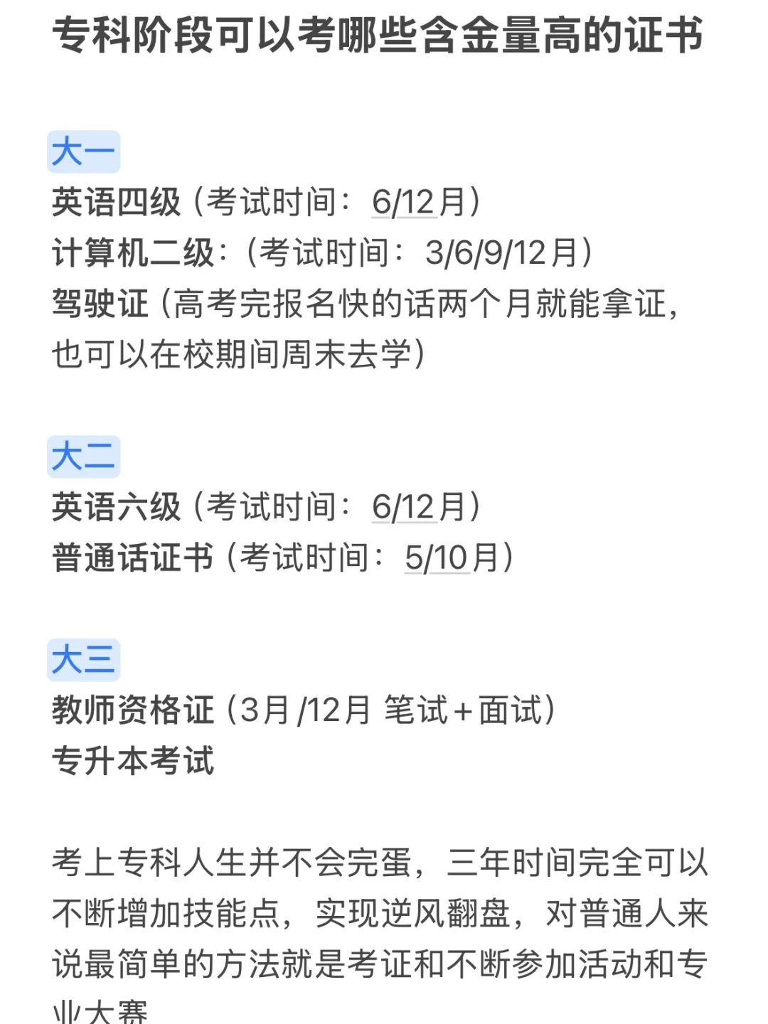 👏最后跟大家分享专科阶段可以考哪些含金量高的证书