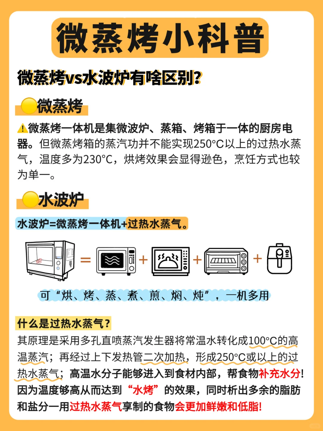 除了微蒸烤🔥还有热门的水波炉!可能部分朋友还不了解什么是微蒸烤一体机和水波炉分别是什么❓橙子给大家仔细唠唠~