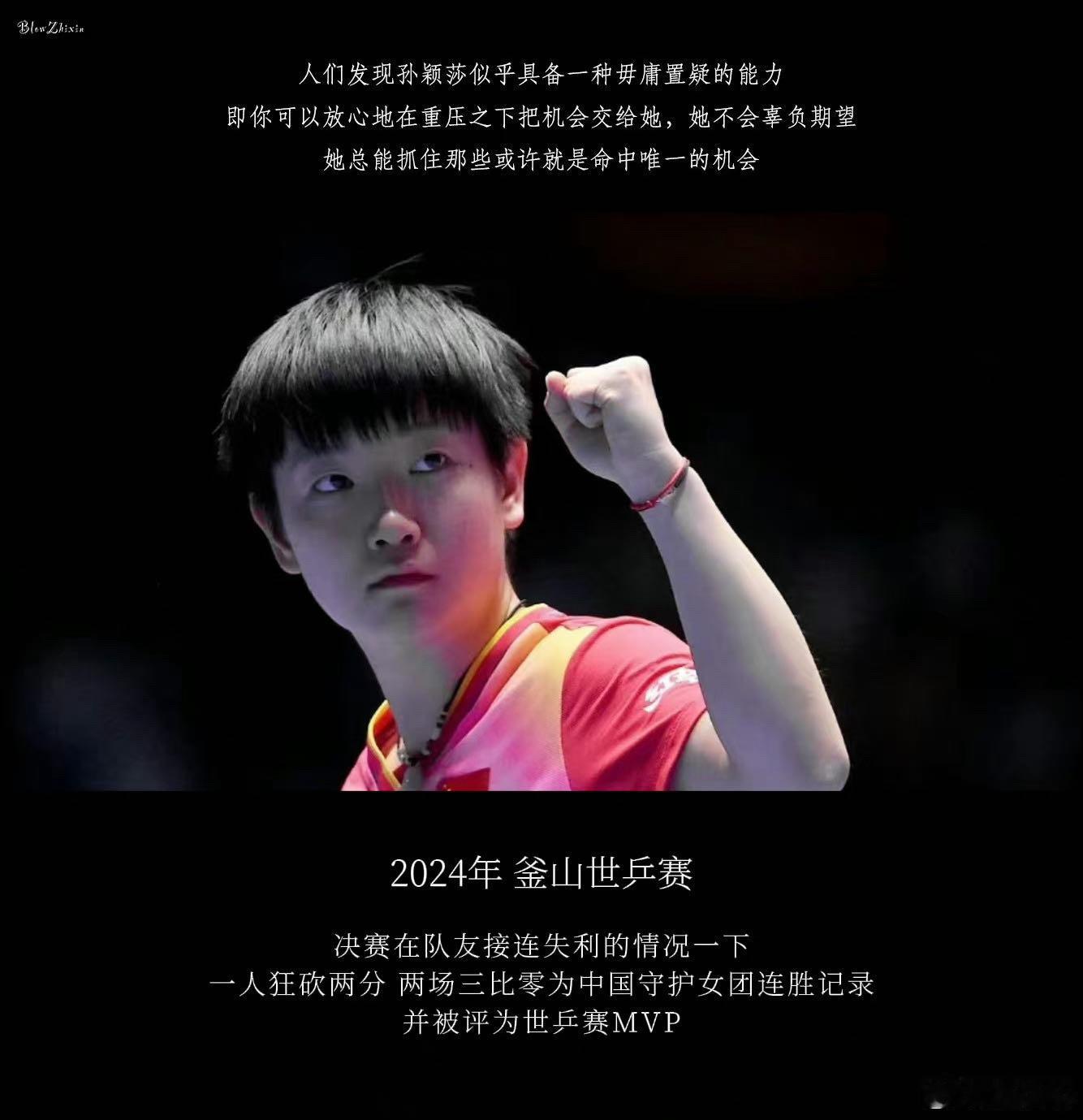 优秀的孙颖莎正能量的领跑者!孙颖莎你已经是非常优秀啦!年仅24岁就已经夺得国内外大小赛事92个冠军,荣获国际奥组委评出来的,2024奥运会最杰出的女运动员,并代表亚洲参加巴黎奥运闭幕式成为至今为止第三位并成为女性首位亚洲运动员代表!孙颖莎首创年度世锦赛、世乒赛、奥运会三大赛事五金王!历史第一人!巴黎奥运夺得世界乒乓球混双金牌,成为中国乒乓球混双历史上第一枚金牌,实现了零的突破载入了历史的史册!实现了世锦赛全满贯、世乒赛金满贯、亚运会三冠王、并连续三年夺得世界乒乓球女子单打排名第一等耀人的佳绩!孙颖莎你是祖国的骄傲你是最棒的!我们永远支持你![赞][赞][赞]