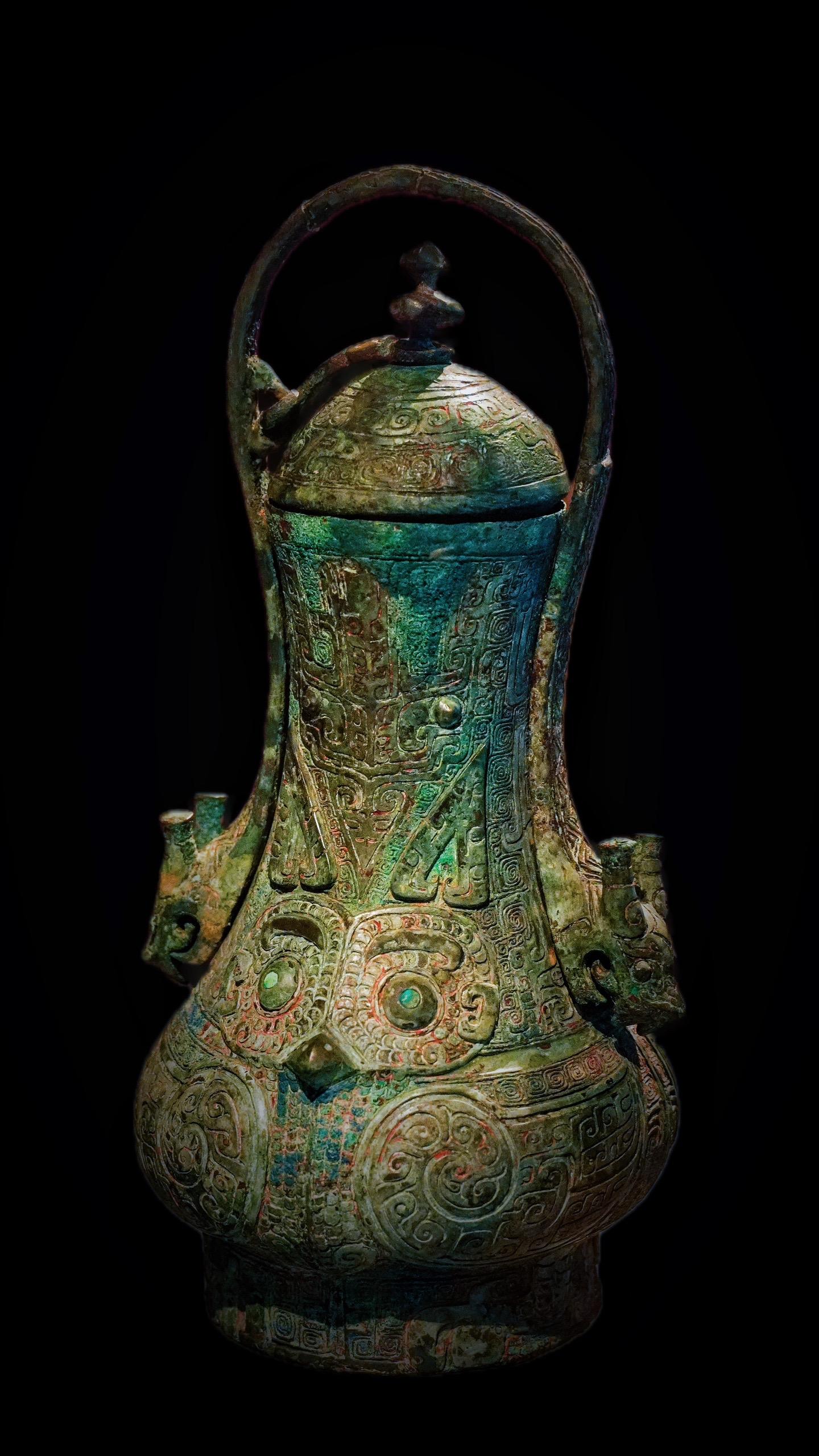 商代·嵌绿松石鸮卣。王旅啴啴,如飞如翰