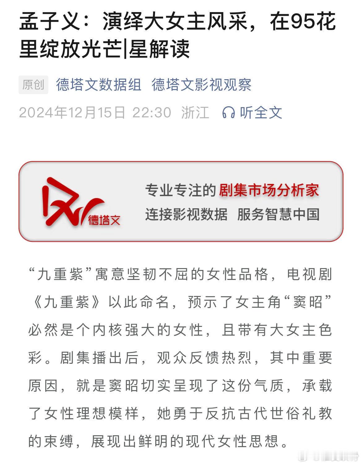 孟子义有效剧播 孟子义《九重紫》热播,专业数据一路向好,商业价值大幅提升,新增八个商务彰显人气,孟姐用实力演绎什么叫有效剧播,未来定更精彩!
