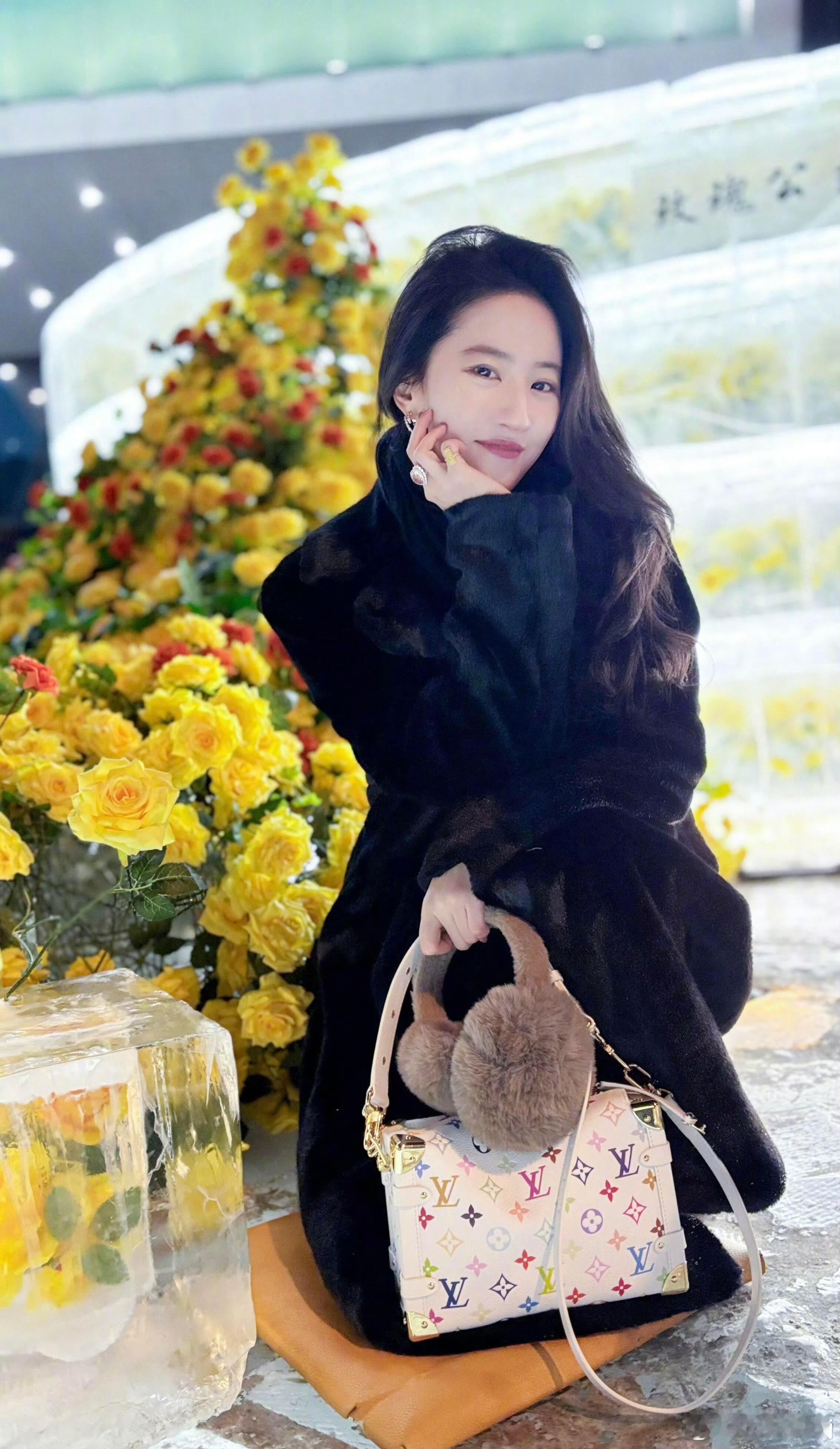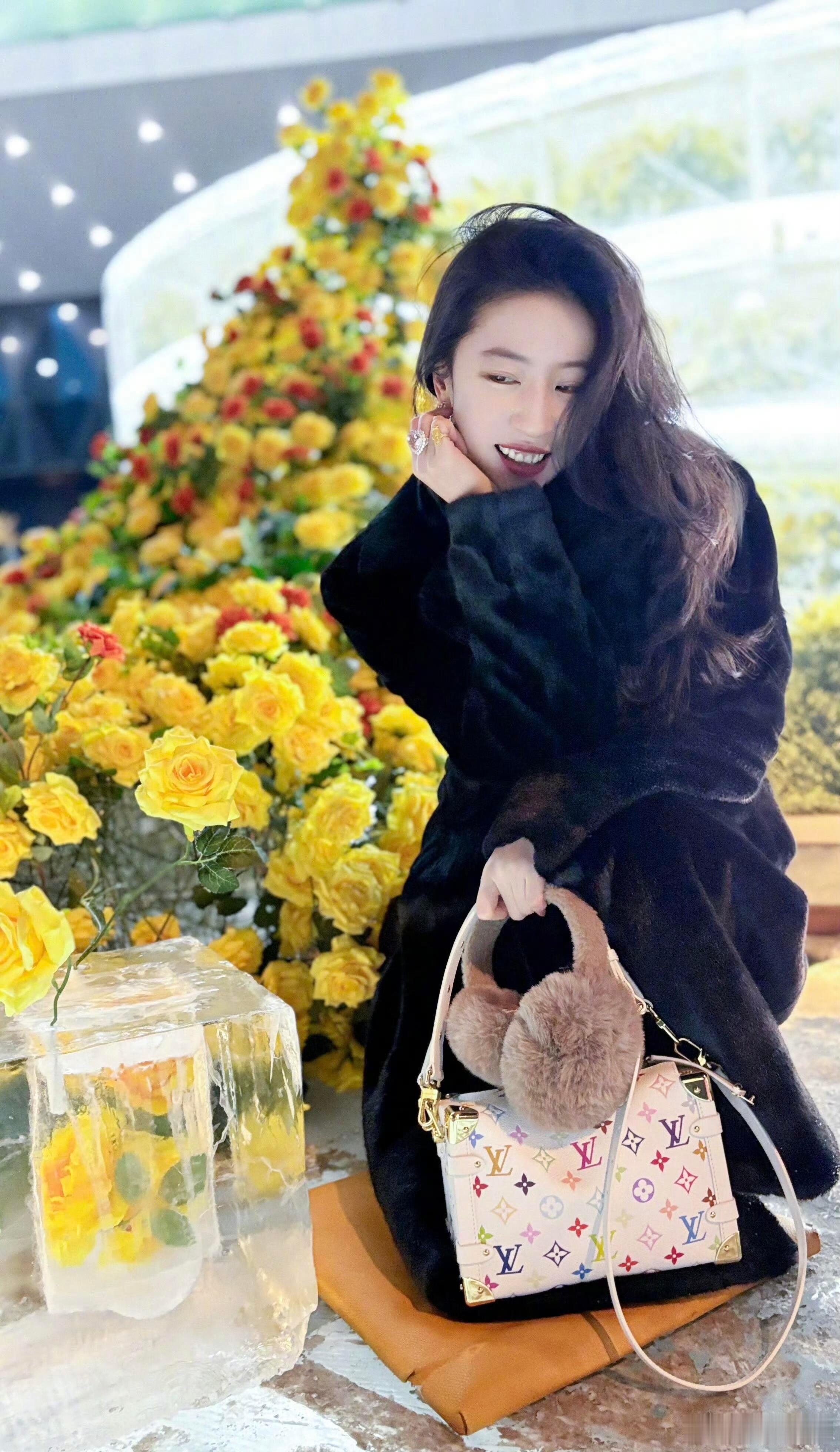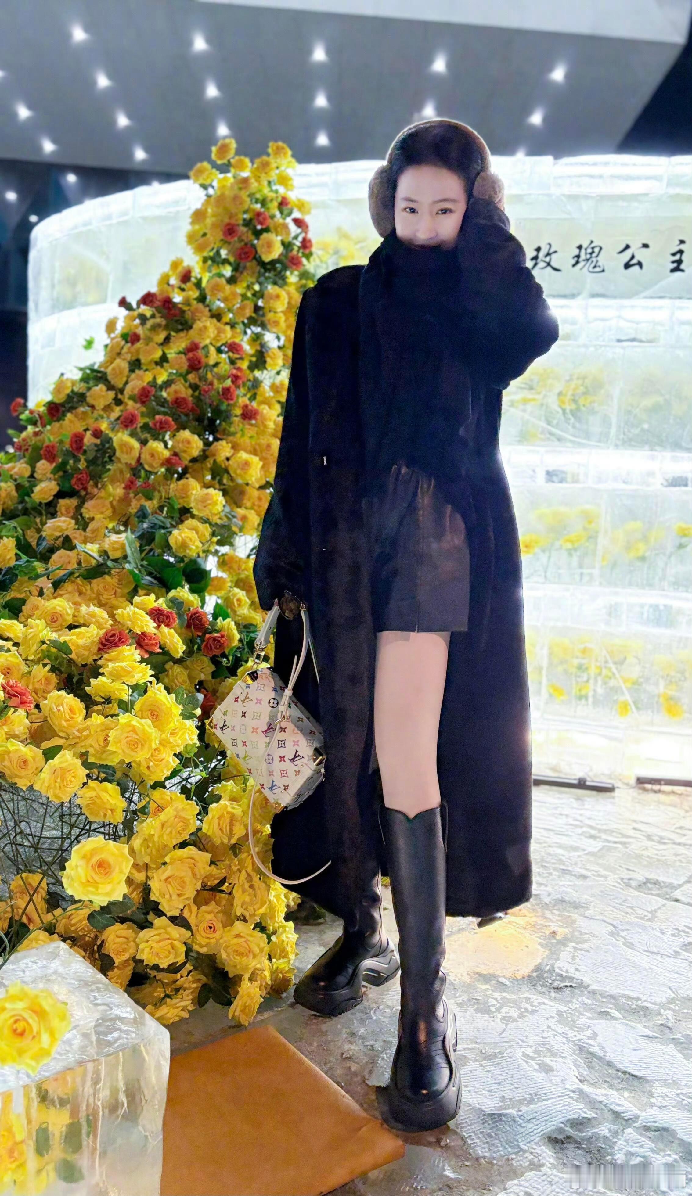 刘亦菲去看冰封黄玫瑰了速度打卡哈尔滨的冰封黄玫瑰,刘亦菲这行动力真的杠杠的!以