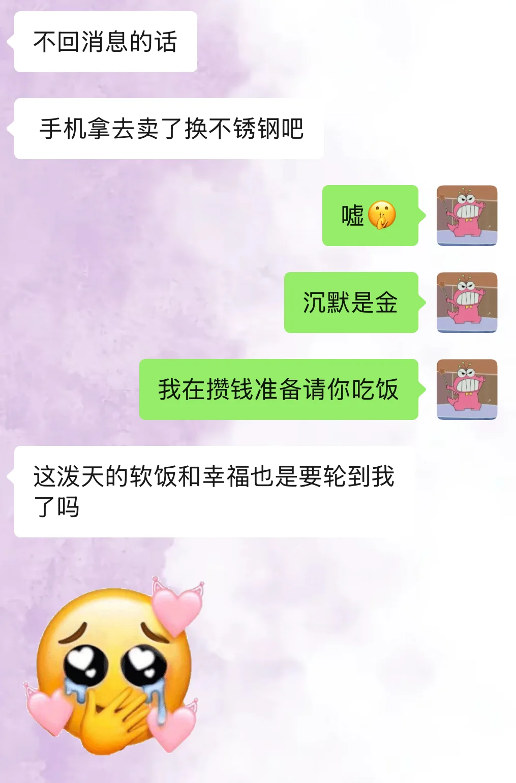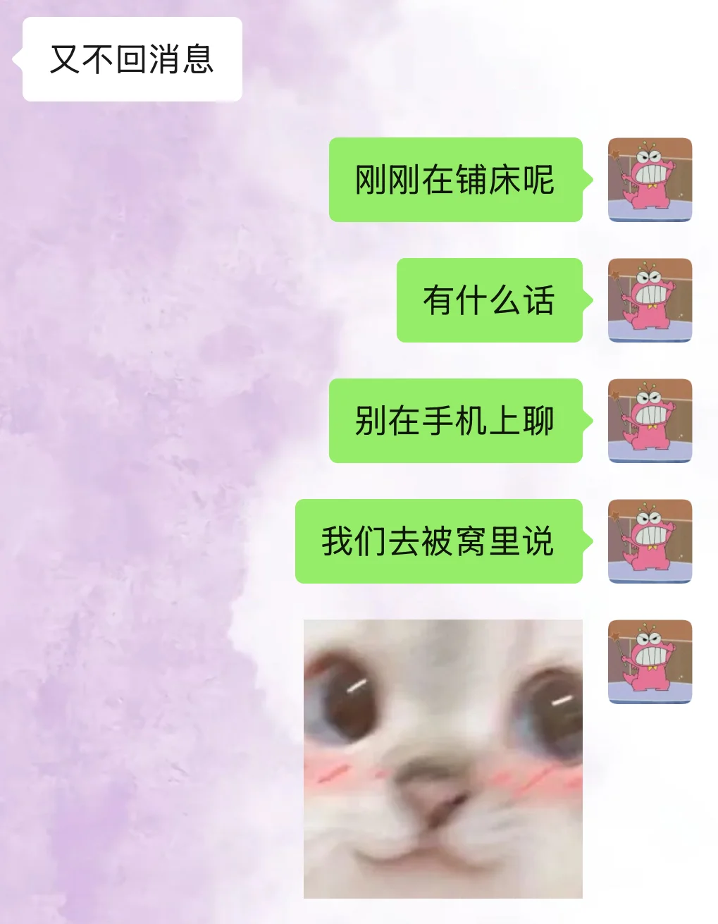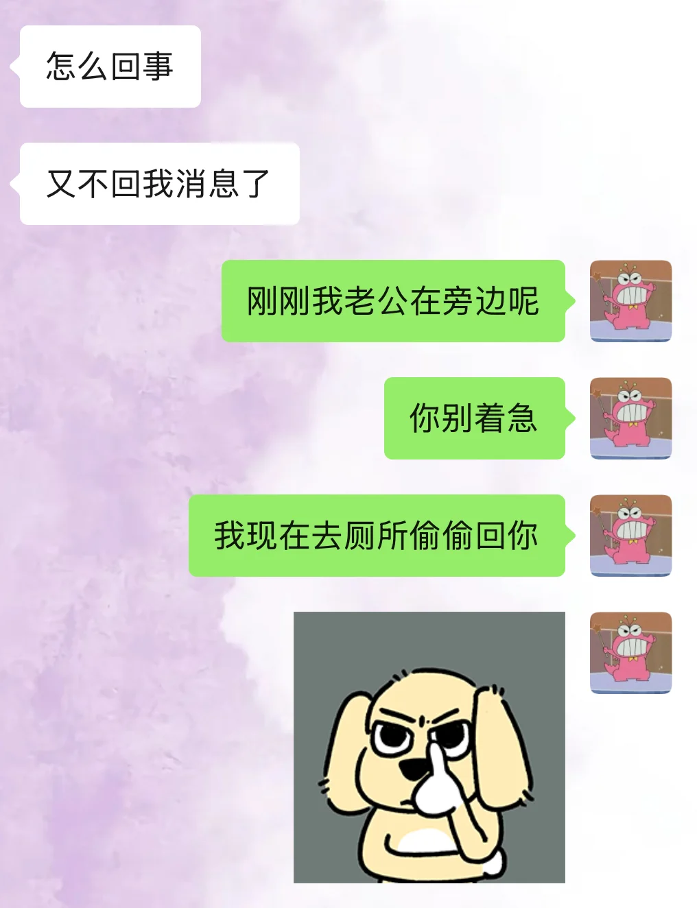 每次看到上一条消息已经是几个小时前的时候我就知道是时候展示我的嘴皮子功夫和倒打一耙的技术啦[得意R]