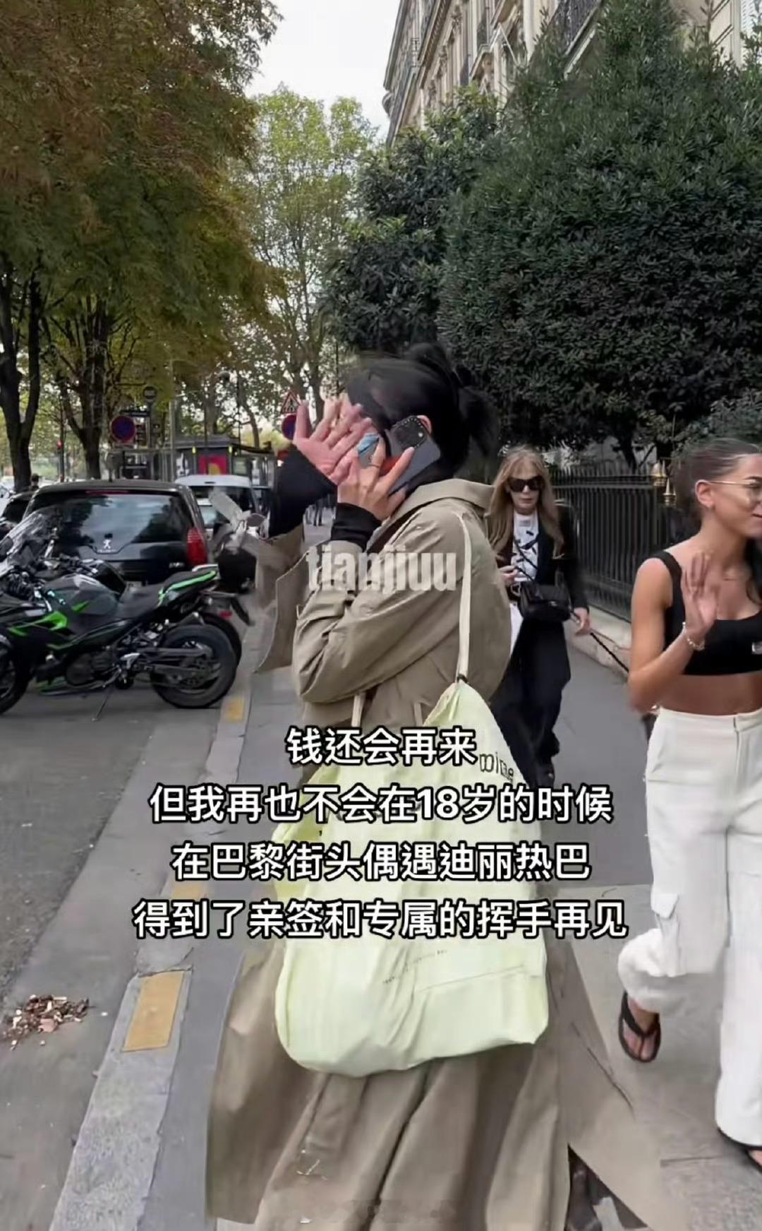 巴黎街头偶遇迪丽热巴 在巴黎偶遇迪丽热巴,还拿到亲签[悲伤]好羡慕啊