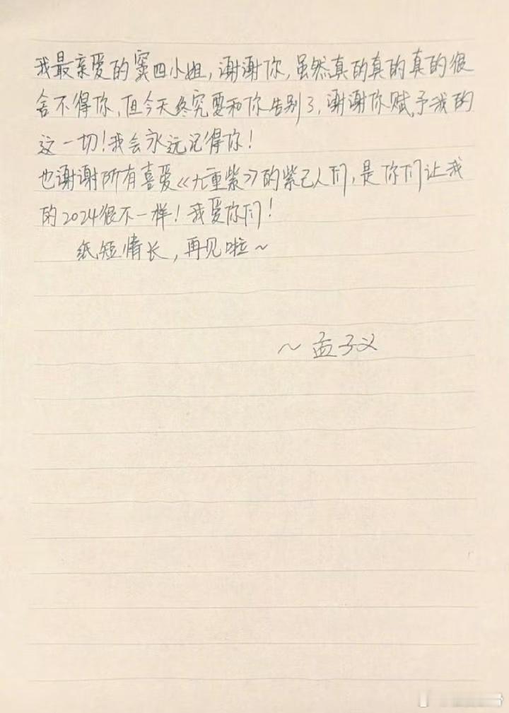 孟子义手写信告别窦昭 孟子义九重紫收官视频 读着孟子义的手写信,仿若能看见她与窦昭一路走来的艰辛与成长,字里行间都是深情。工作室视频适时响起熟悉的旋律,串联起剧情碎片,宣告九重紫落幕。不舍窦昭离去,更期待孟姐下一个惊艳角色,相信她定能用演技续写传奇。