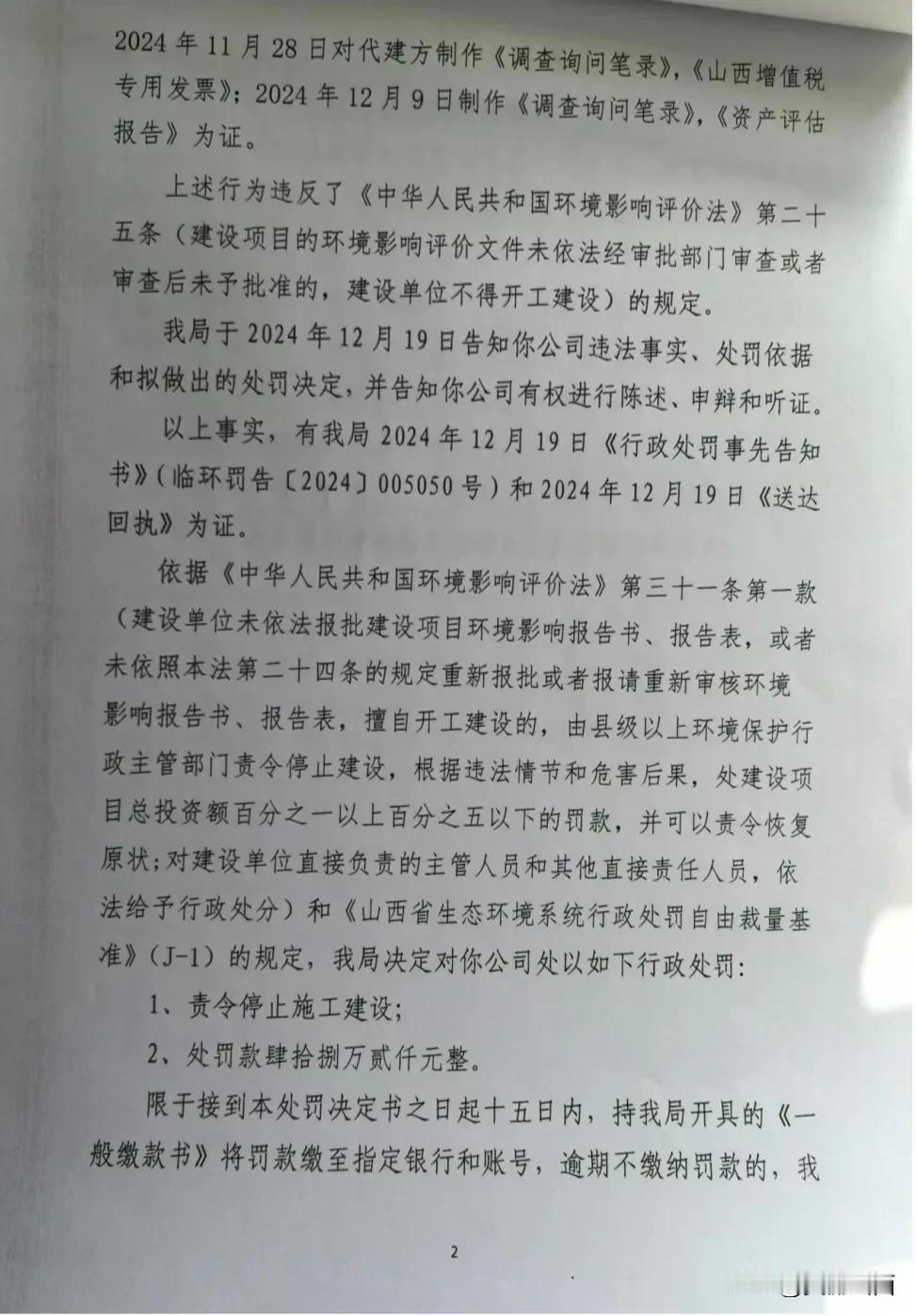 洪洞一洗煤厂因未批先建被罚482000元,并要求责令停止施工建设!