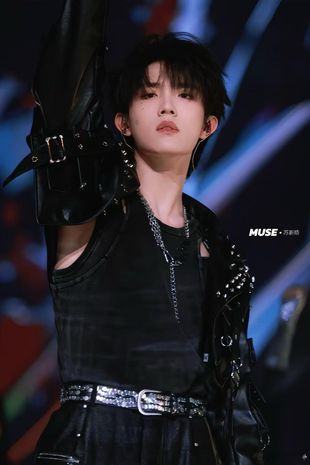苏新皓跨年造型飒图 看苏新皓在跨年晚会上的亮相,黑色皮衣与帅气的发型无疑是最抢镜的存在,他的每一个细节都展现出无敌的帅气与自信,气场瞬间炸裂!