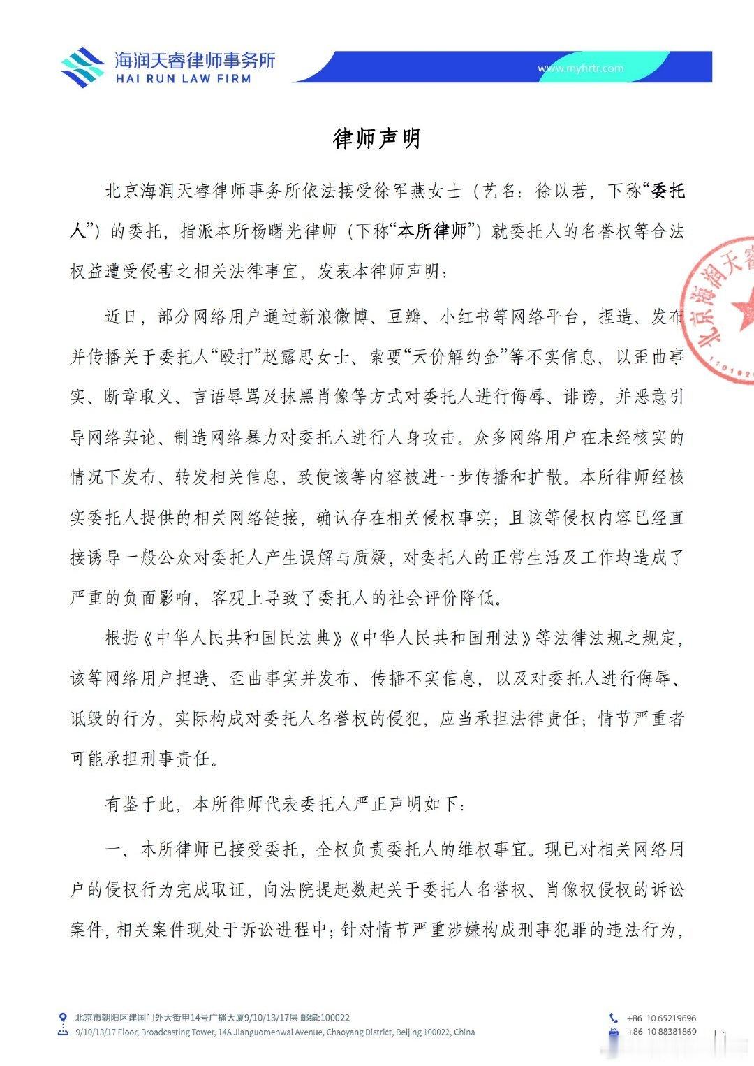 徐以若律师声明徐以若律师发布声明
