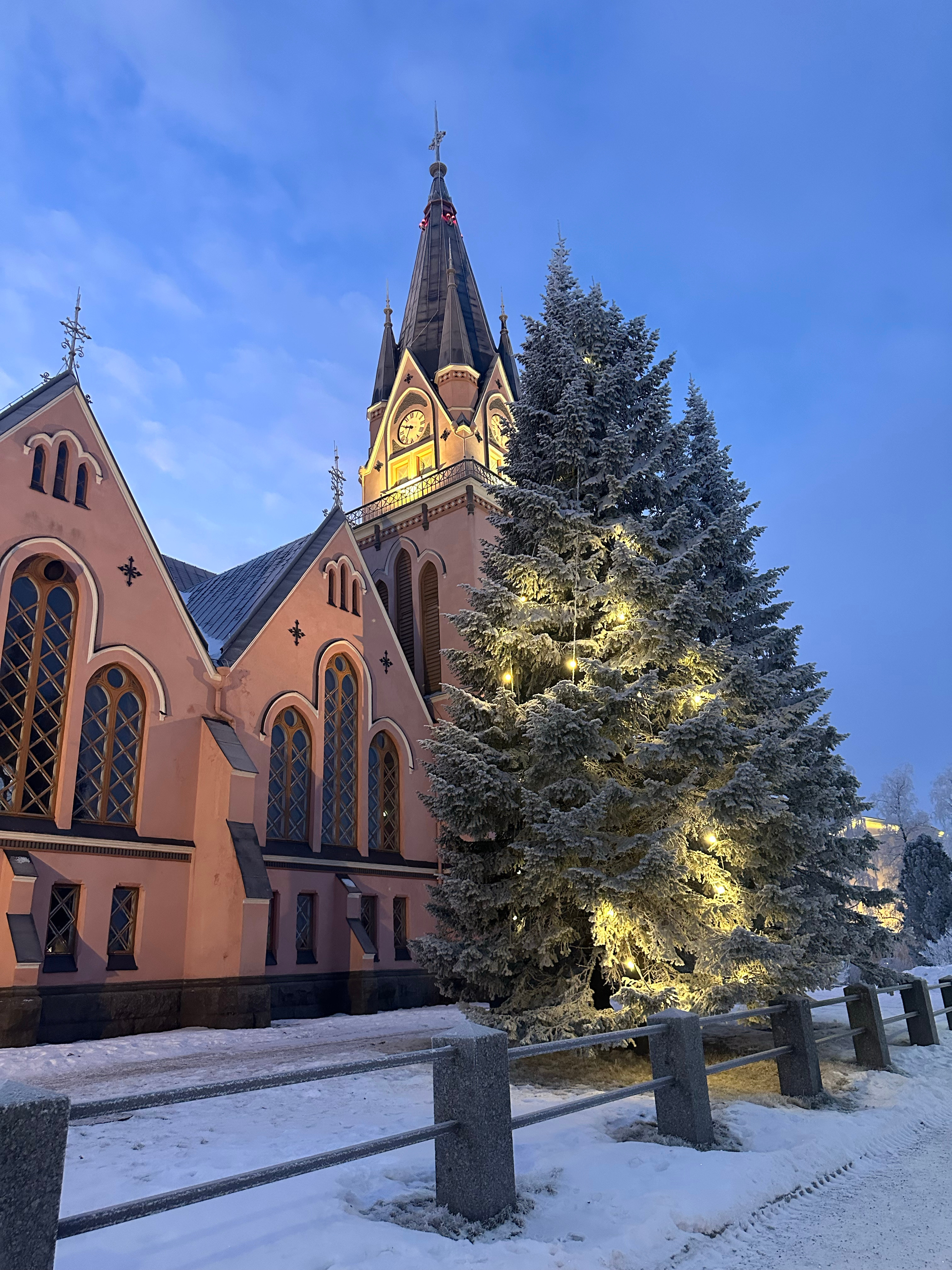 来到了芬兰的凯米小镇歇歇脚,这个小镇步行30分钟都能走完。非常安逸的小镇人少,安静,专门来看了这个粉色哥特式的大教堂。