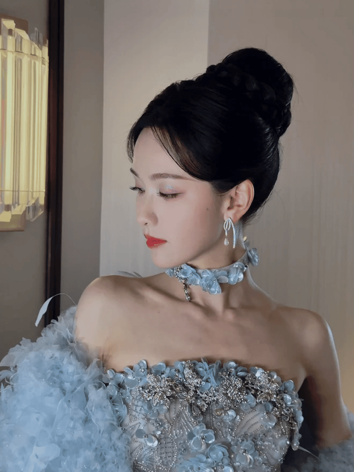 陈都灵裙子上开了数不清的花儿 这条裙子简直是陈都灵的专属魔法,繁花与开叉设计透露着奢华,冰蓝色的妆面更是为她增添了一份清冷与贵气,优雅与浪漫并存,成为了红毯上最璀璨的星光。