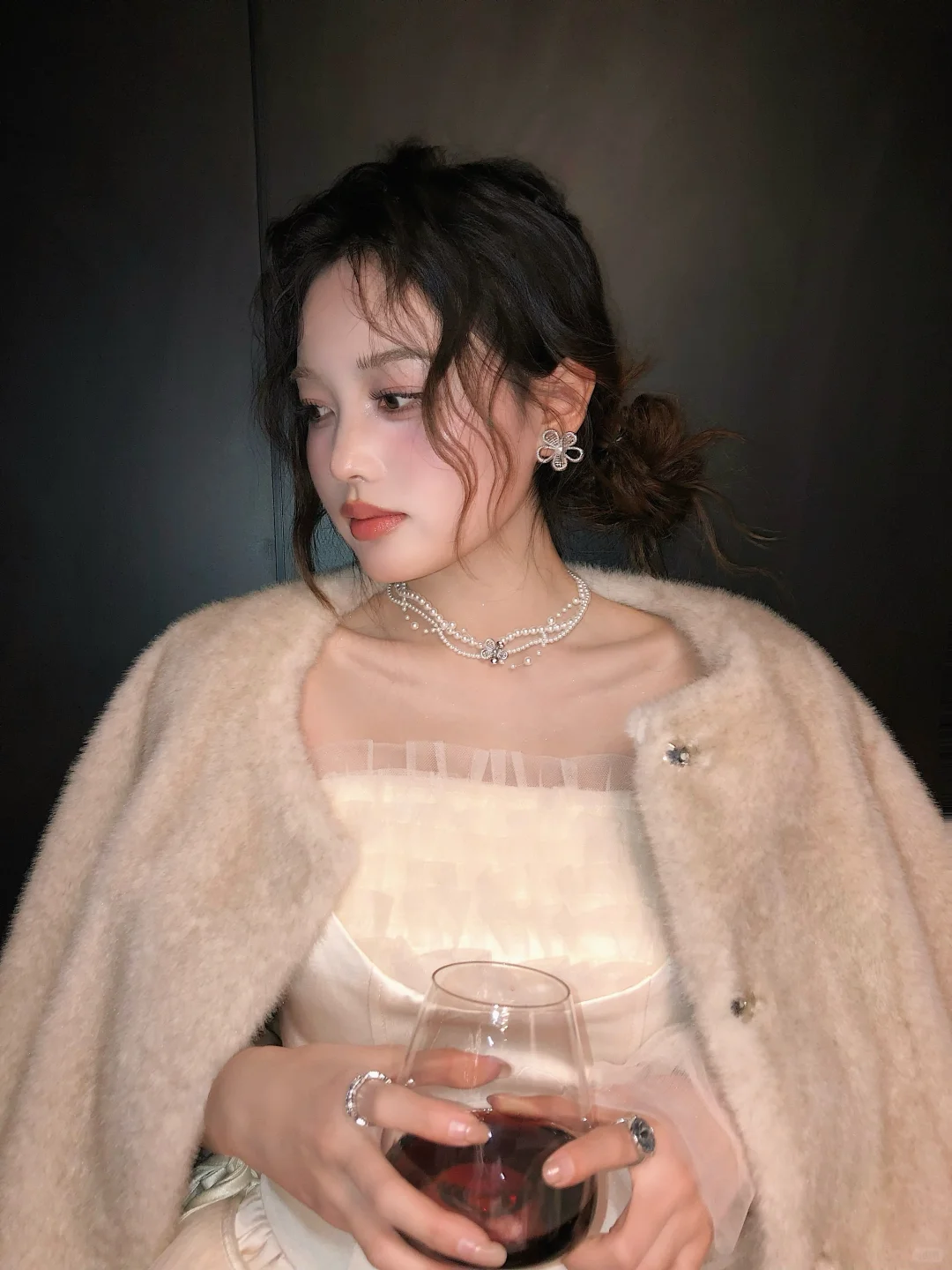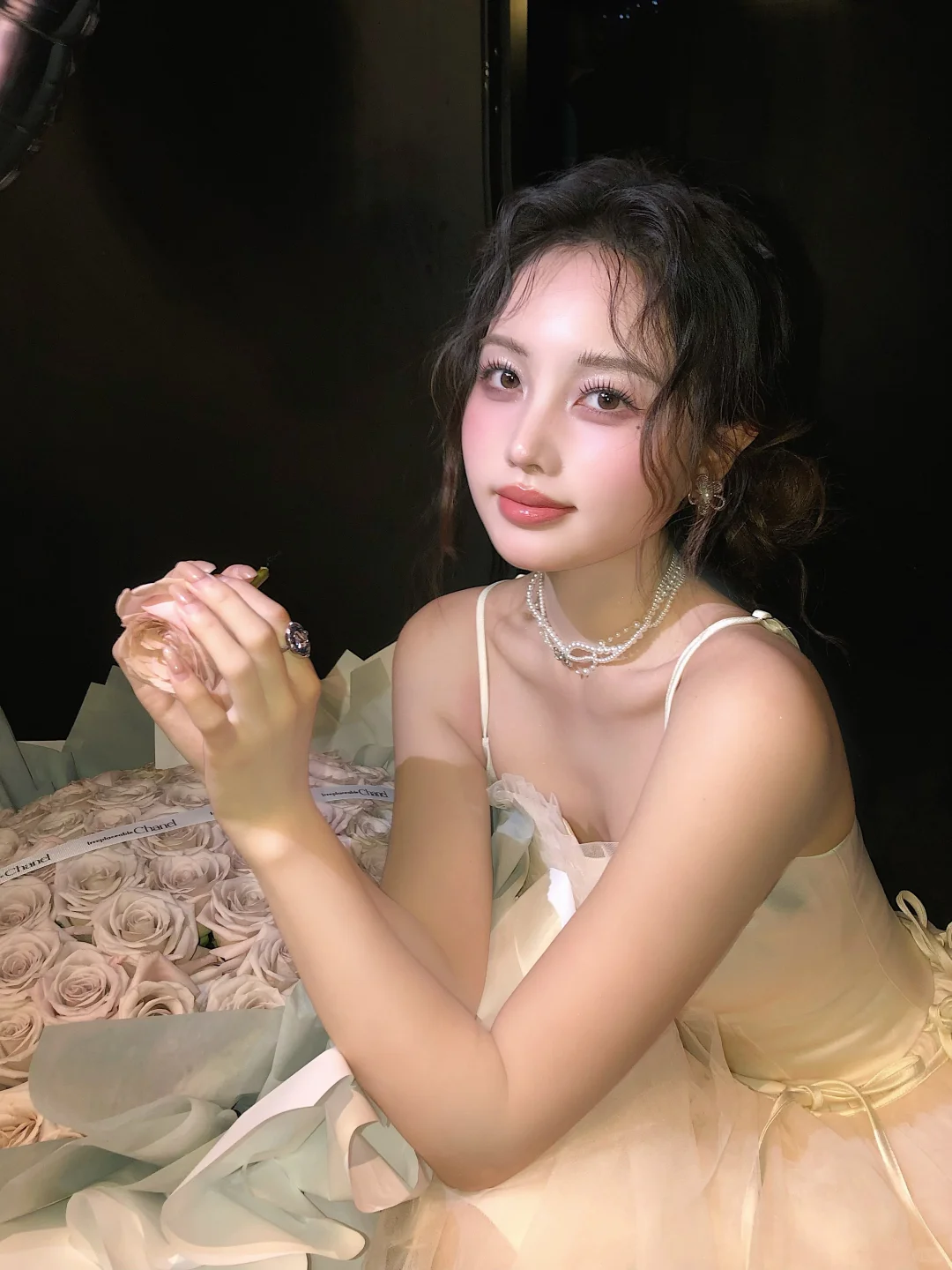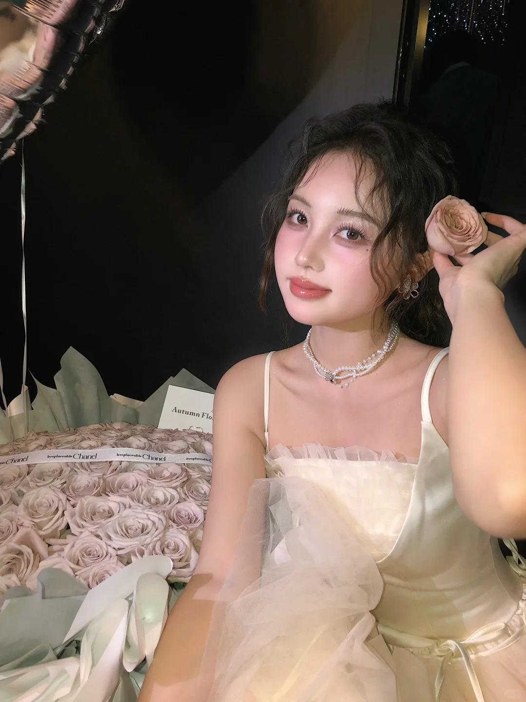 穿吊带裙配饰真的好重要呀! 珍珠项链狠狠爱了!