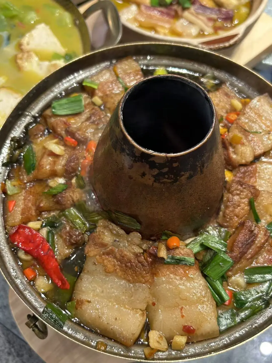 晚餐再去渔鲜生吃饭吧!冬天推出了千岛湖暖锅🍲满满一大锅端上来的时候热气腾腾,尤其是淳安土猪肉暖锅深得我心💓猪肉是肥瘦相间的五花肉,看着就相当的诱人,口感肥而不腻,香气诱人~
