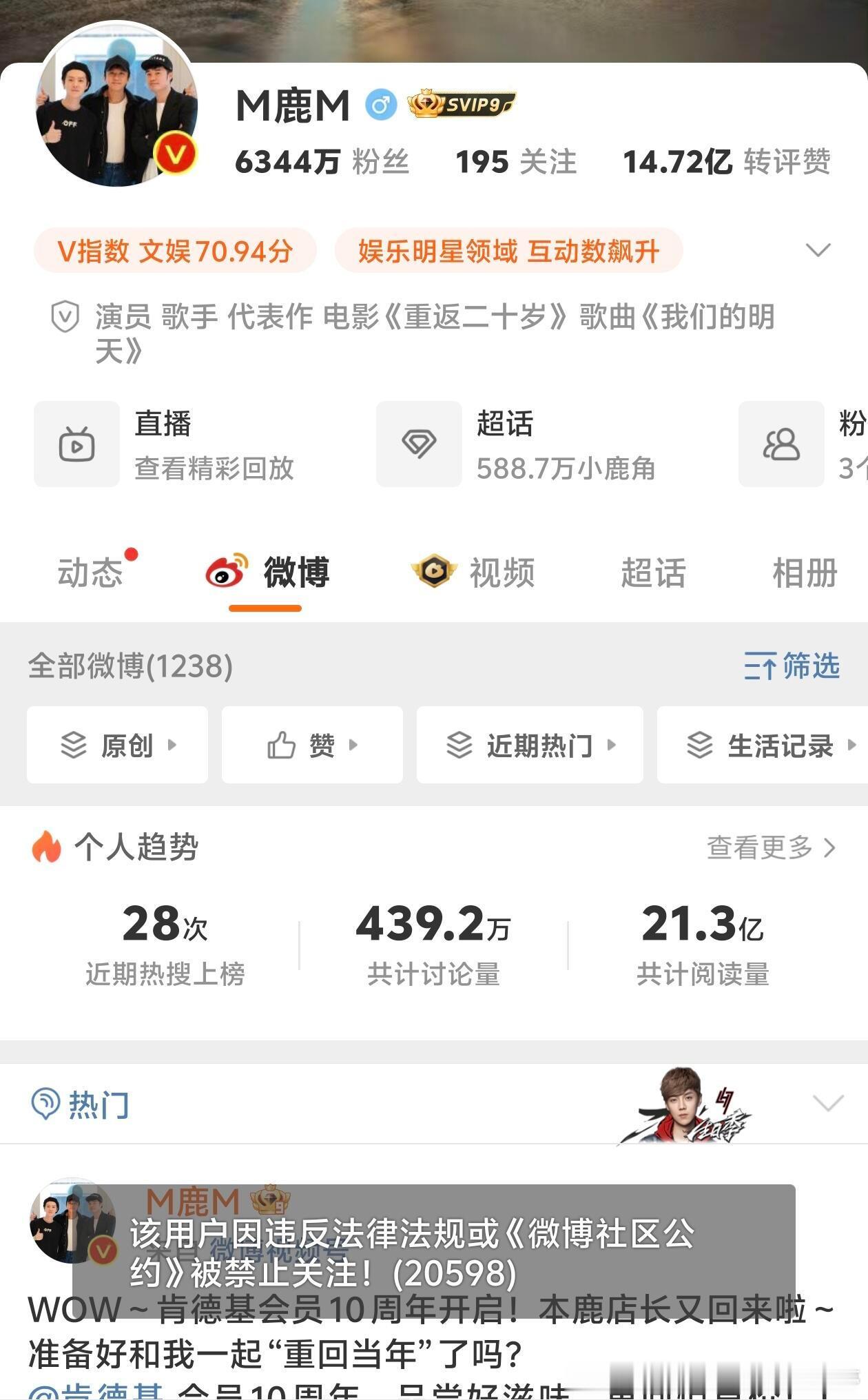 鹿晗社交平台被禁止关注突发!鹿晗社交账号被禁止关注!