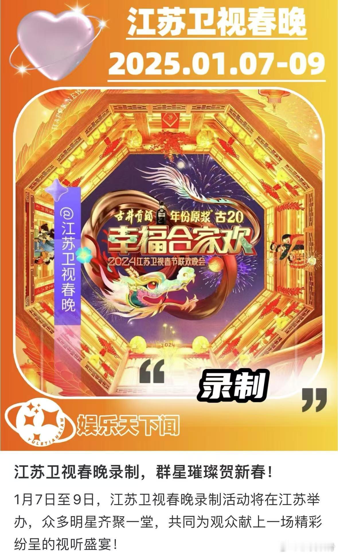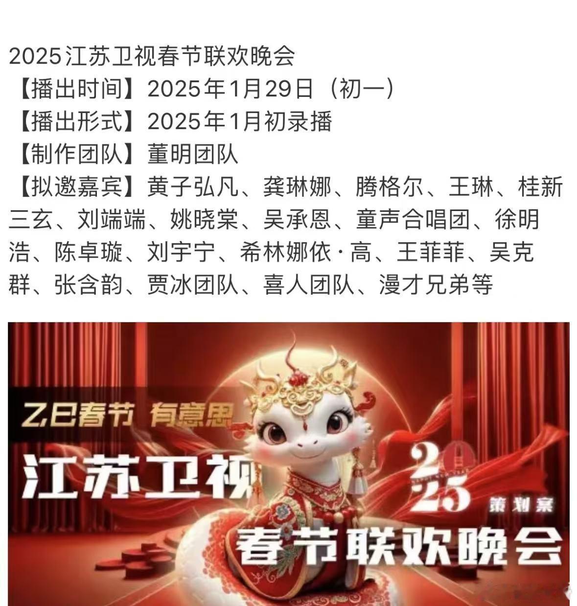 2025江苏卫视春晚官宣 1 月 29 日,江苏卫视春晚即将开启。想到四士同堂和某某某的精彩演绎,以及丰富多样的节目,就满心欢喜。