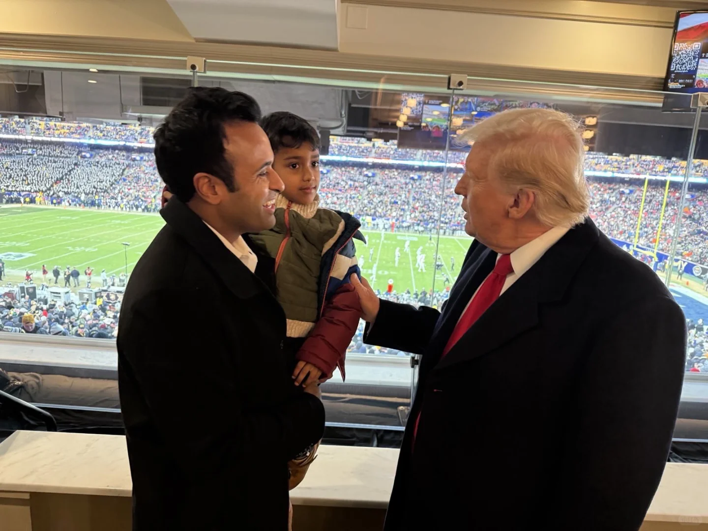 伊隆·马斯克与唐纳德·特朗普、迈克·约翰逊、JD Vance 和塔尔西·加巴德出席第 125 届陆军-海军足球赛。