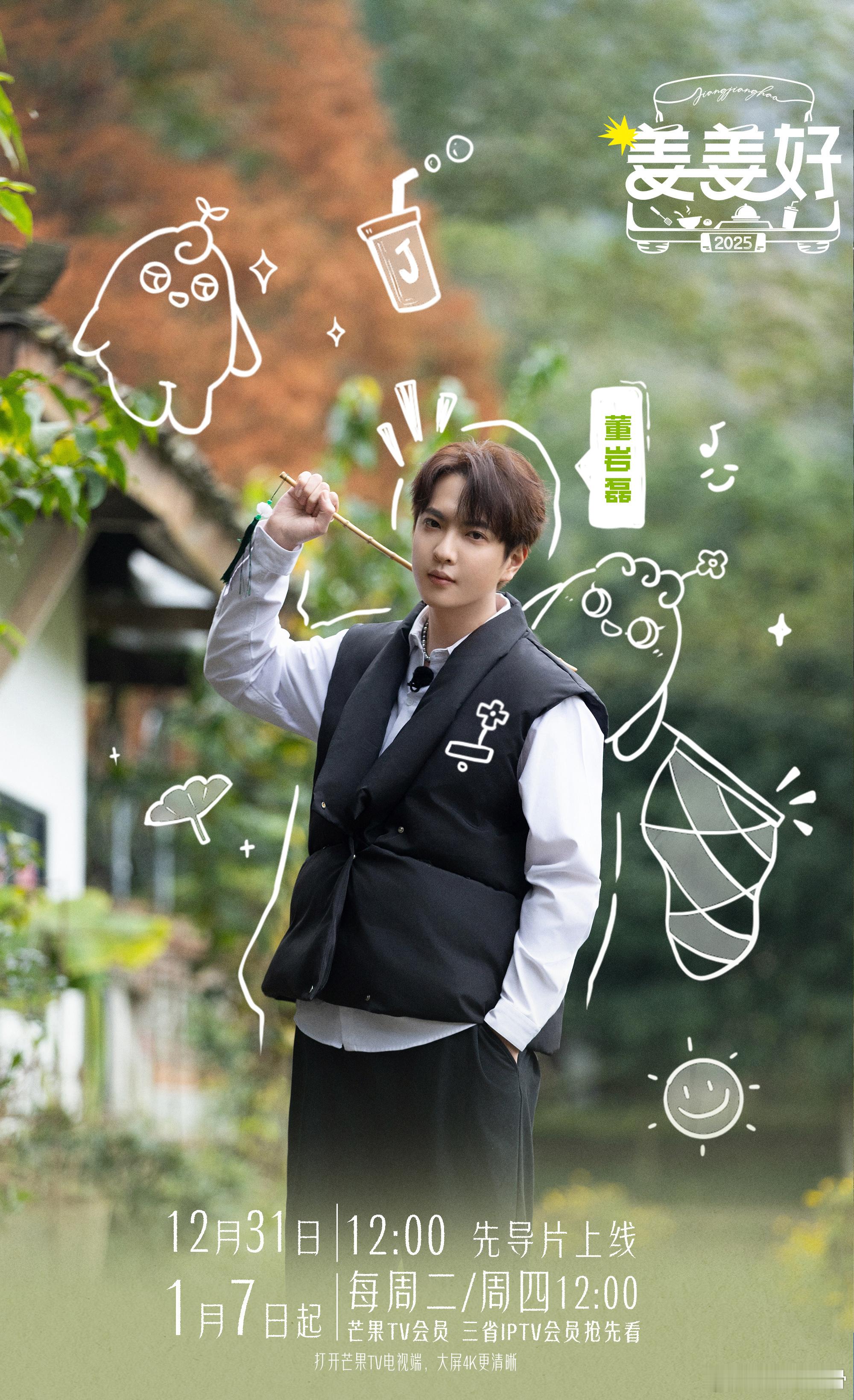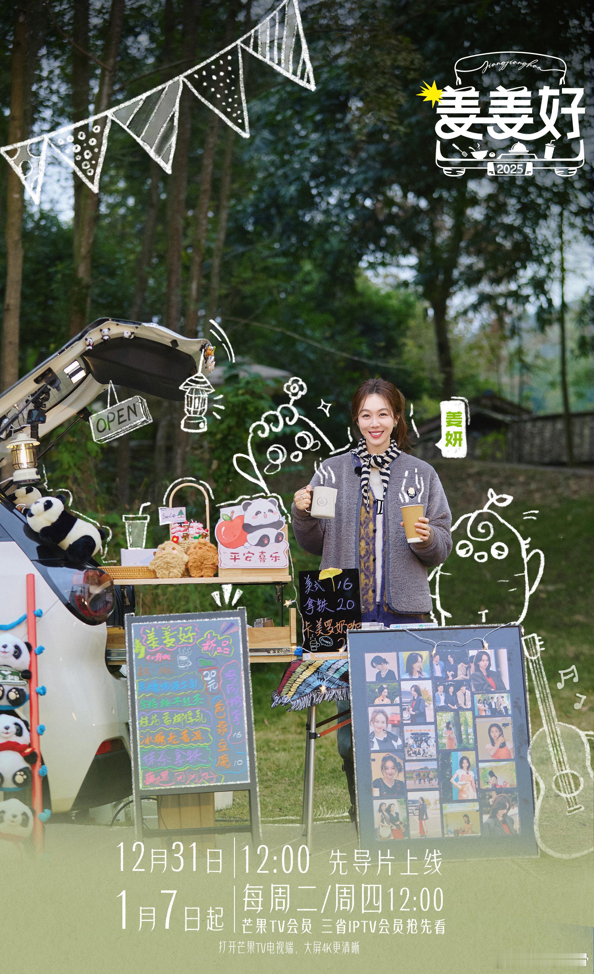芒果治愈慢综又上新了 生活陷入低谷?《姜姜好》来拯救。姜妍、黄小蕾、董岩磊开启自驾摆摊之旅,捕获治愈,2025 让心情重新绽放光彩。