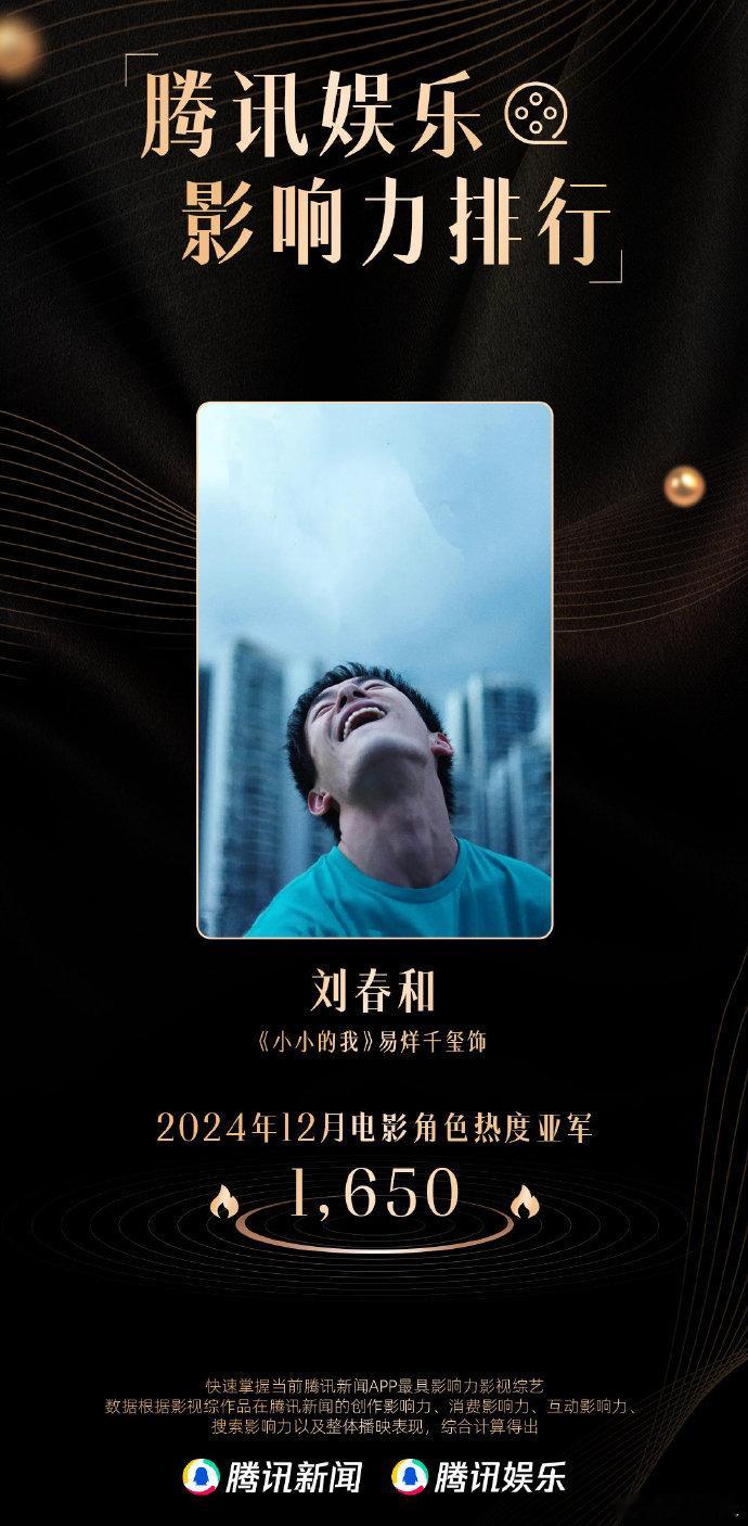 小小的我电影热度冠军 易烊千玺小小的我电影热度冠军 易烊千玺凭借《小小的我》惊艳全场!他演的刘春和,那青筋暴起的面部、笨拙的动作,无不诉说着脑瘫患者的艰难,他没有丝毫敷衍,而是全身心沉浸,用极具感染力的表演打动观众,拿下热度冠军是必然,为千玺的勇气点赞。