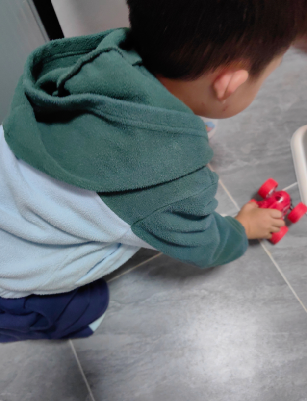 当妈以后上厕所就没什么隐私了,玩小汽车都要在跟前玩。