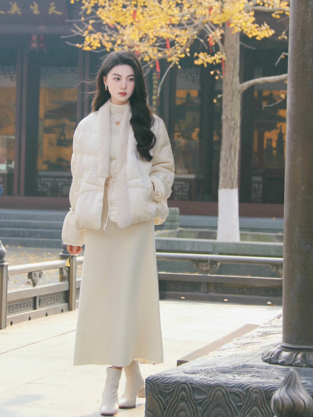 新年倒计时啦🕙 新年衣橱里必备的新中式赶紧准备起来 淡雅清新的白色永远不会出错 上身就是清冷大小姐即视感 短款羽绒服过冬也完全美丽不冻人~